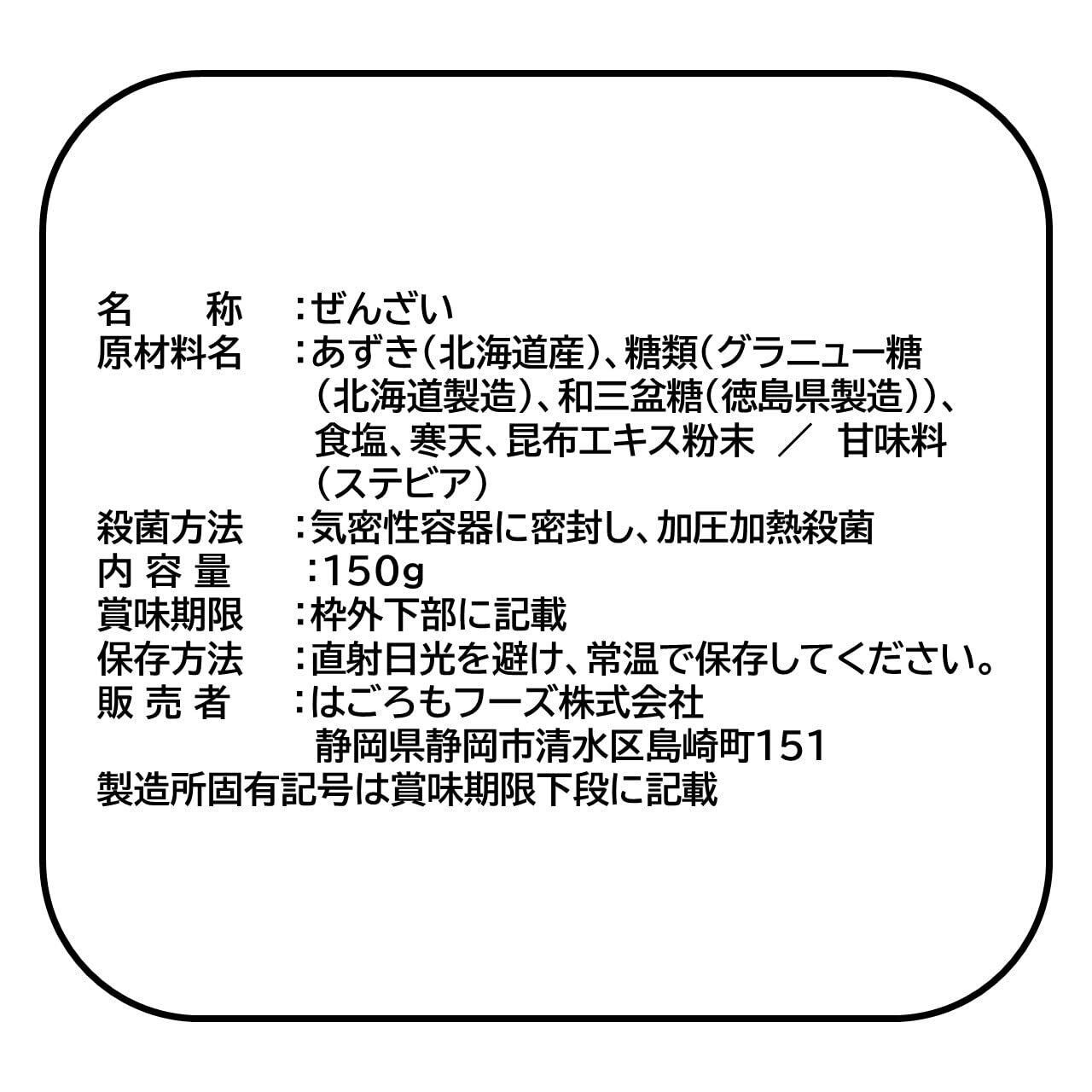 北海道十勝産あずきと北海道産グラニュー糖を100%使用し、おいしさそのまま糖質40%%オフ(当社ぜんざい150gとの比較)。すっきりとした甘さの中に、うま味のあるぜんざいに仕上げました。