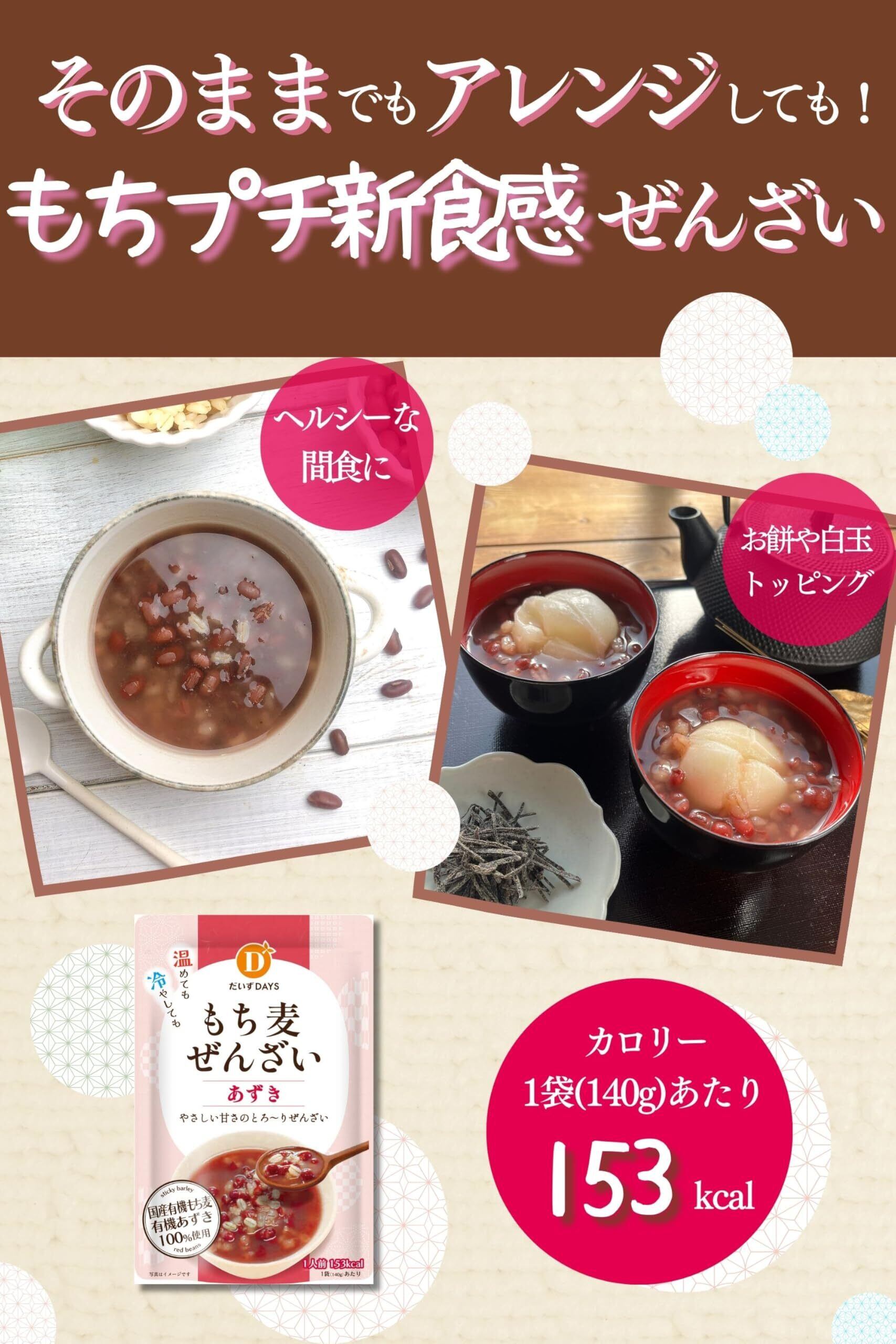 [ だいずデイズ 公式 ]もち麦ぜんざい【おやつ×もちむぎ】おしるこ 国産 有機あずき 有機もち麦 北海道産 140g1箱(12袋入)