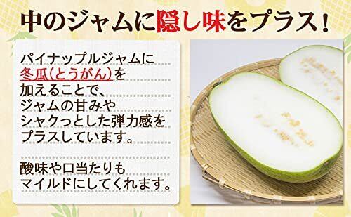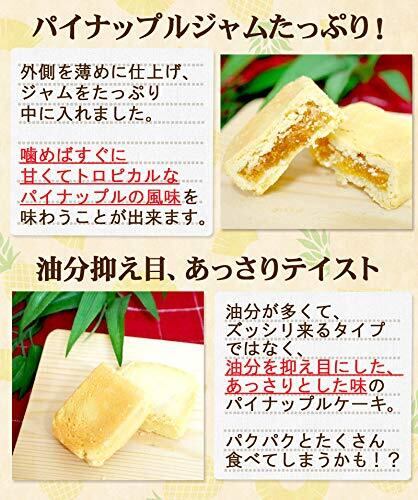 内容量:1個あたり25g ×10個入り 原材料:パイナップルジャム(冬瓜、麦芽糖、砂糖、パイナップル、D-ソルビトール70%)、バター、パーム油、クエン酸、食塩、香料、クエン酸ナトリウム)、小麦粉、マーガリン、砂糖、卵、全粉乳、チーズパウダー、食塩 原産国:台湾 プレーン1個(25g)あたり カロリー109.2kcal たんぱく質 1g 脂質 4.2g 炭水化物16.8g ナトリウム32mg