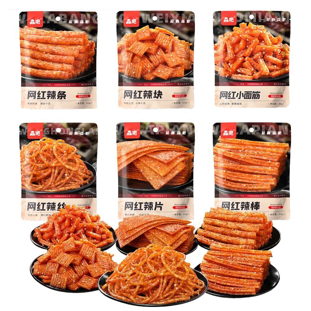 ラーティアオ ソフトで噛み応えのある食感 スパイシーだが辛口ではない 魅惑的な香り おつまみ 中国お菓子 麻辣 お菓子 辛い 辣条 麻辣 辛い食べ物 中国零食 辣条辣片辣棒辣块辣丝小面筋 辣条零食 辣味休闲零食 组合辣条 怀旧零食 香辣零食(6種類,6袋)ランダムなフレーバーで出荷