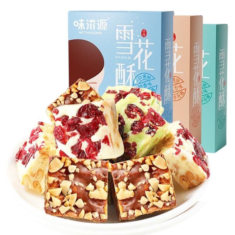 雪花酥 牛圧乳芙ビスケットケーキ 牛軋糖 甘くて飽きない 食感が甘く歯ごたえがある 個別小パッケージ 奶糖软糖 中華お菓子お菓子 満腹おやつ 代食パン 即食饼干(ミルクの香り*1箱+抹茶味*1箱+チョコレート味*1箱)