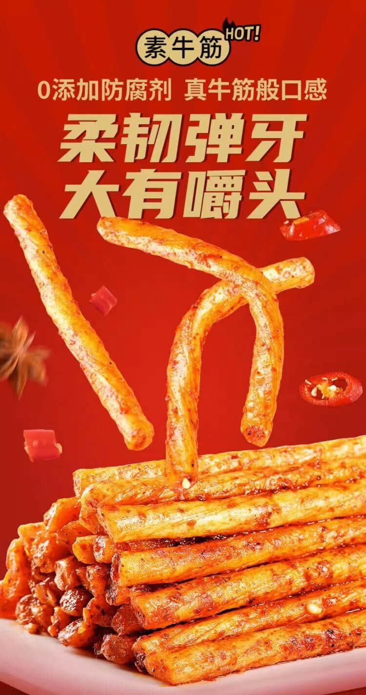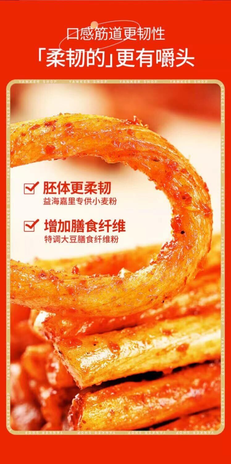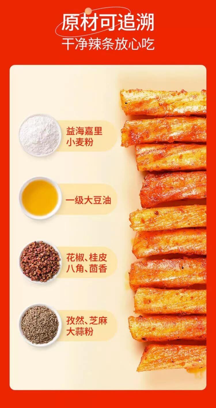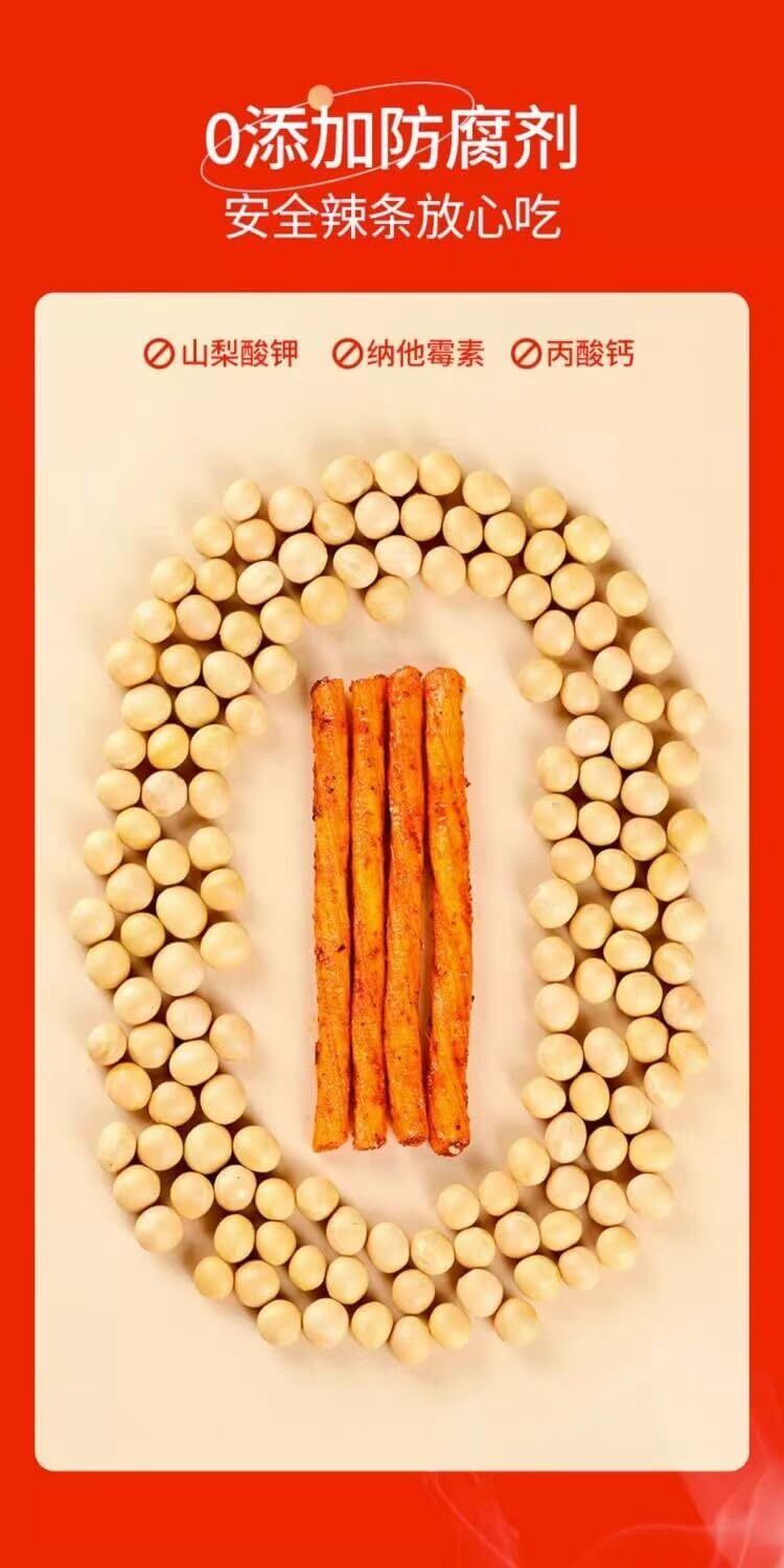 辣条 ラーティアオ 非常に噛み応えがある スパイシーでほのかな甘み スパイス 湖南 零食 間食 中国零食 中華小吃 辛口 麻辣 甜辣 辣條 辣片辣棒 素食 ベジタリアンスパイシー 劲道 豆干 手撕面筋 中国 お菓子 (50袋*1箱)