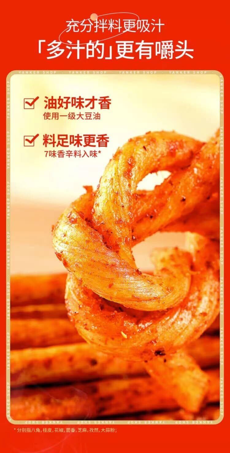 【スパイシー】口の中で唐辛子の風味を感じ、辛くて美味しく、唇を刺激し、一口一口が挑戦と楽しみの完璧な組み合わせである。そっと噛み締めても、一気に飲み込んでも、唐辛子の情熱とパワーを感じることができる。