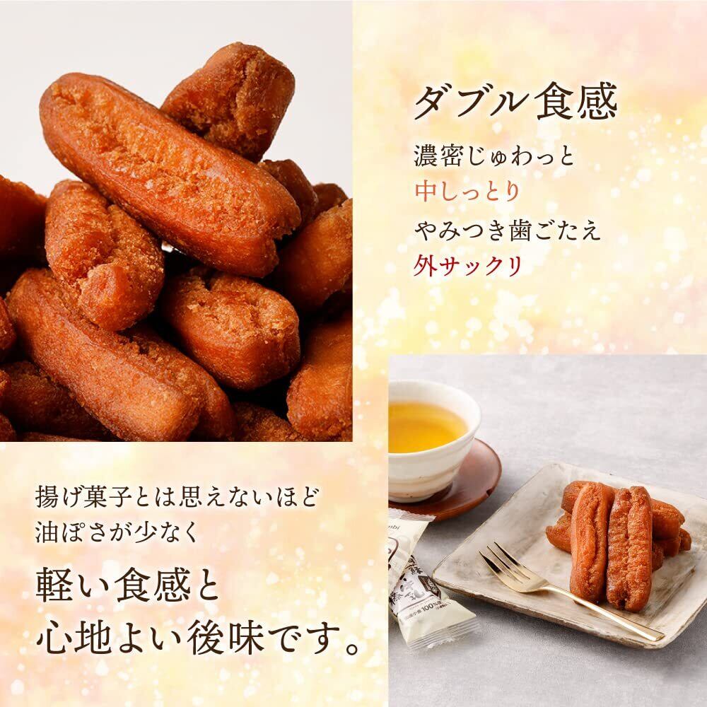 外はサクッと中はしっとり、やさしい甘さが人気のひみつ。揚げ菓子とは思えないほど油ぽさが少なく軽い食感と心地よい後味です。