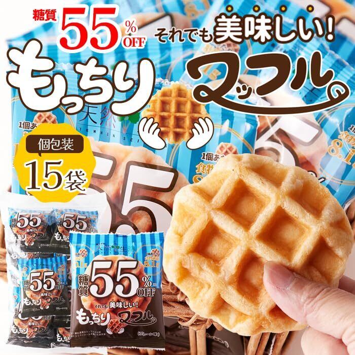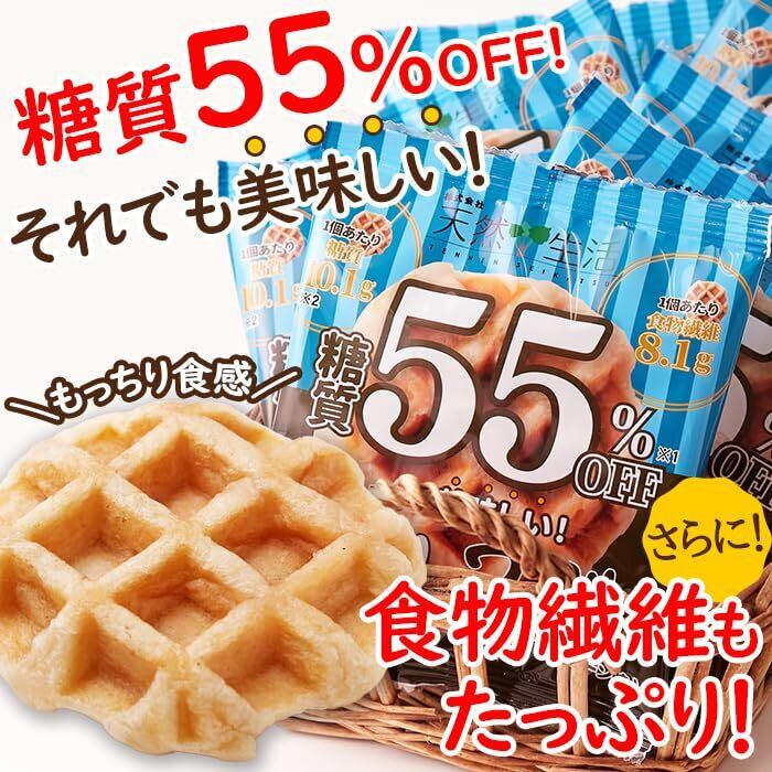 天然生活 糖質55%OFFワッフル (15個) プレーン味 糖質オフ 食物繊維 たっぷり もっちり食感 焼菓子 個包装 常温保存 大容量 お徳用 業務用 ヘルシー