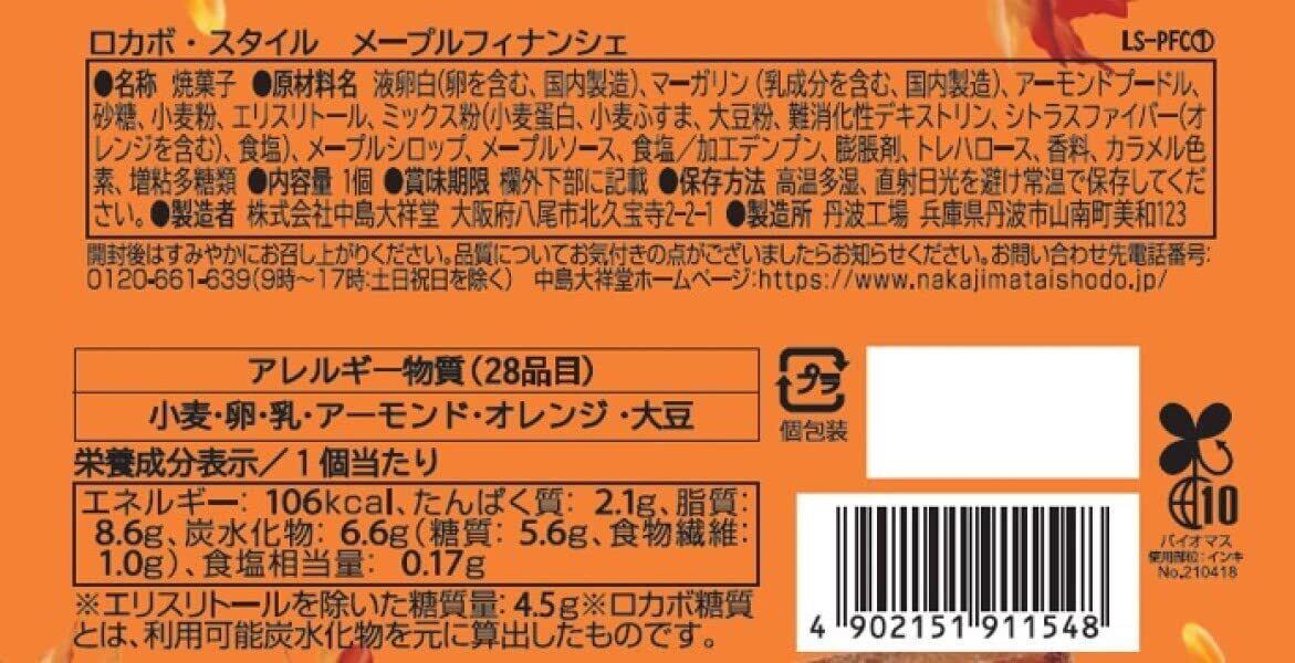 内容量:ロカボ・スタイル メープルフィナンシェ6袋
