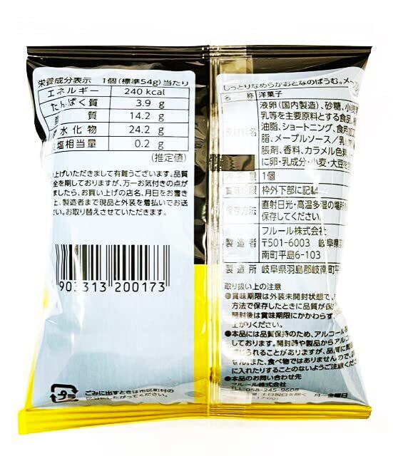 液卵(国内製造)、砂糖、小麦粉、乳糖を主要料とする食品、植物油脂、ショートニング、食用加工油脂、メープルソース/乳化剤、膨張剤、香料、カラメル色素(一部に卵・乳成分・小麦・大豆を含む)