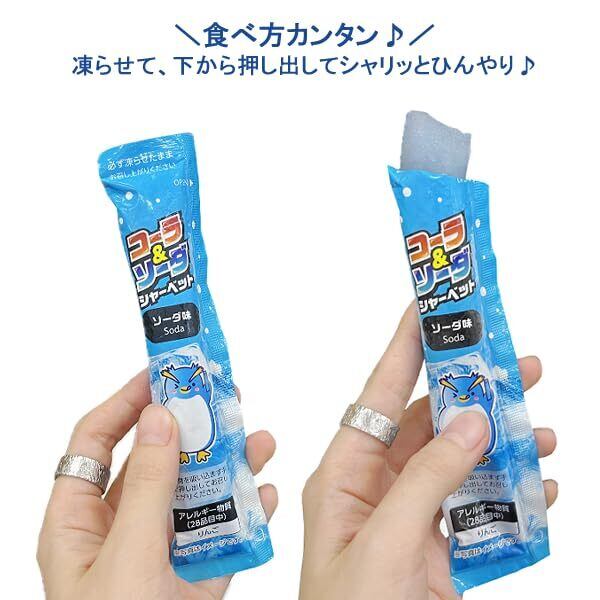 暑い日に凍らせて手軽にシャリっとお召し上がりいただける スティックタイプのシャーベットです。 コーラ味・ソーダ味の2種アソート! 夏にぴったりの爽やかな味わいのアソートです。