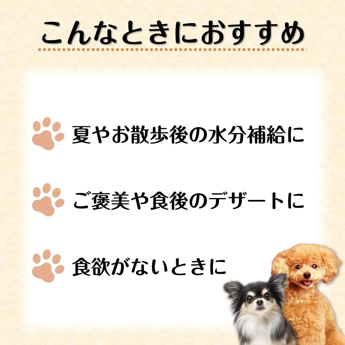 愛犬の体調によってはお腹がゆるくなることがございます。体調に合わせて与える量を調整してください。