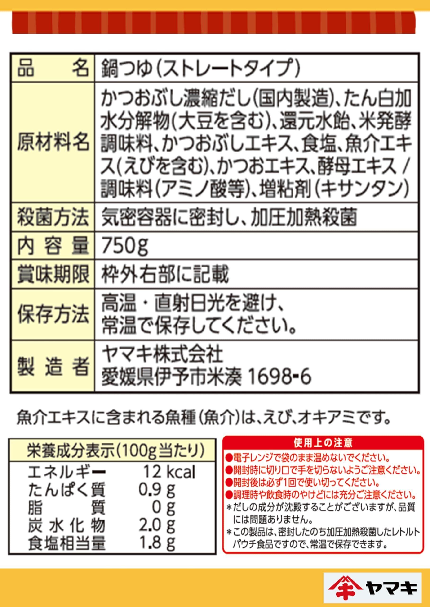 ヤマキ 豚しゃぶ野菜鍋つゆ 750g×2個