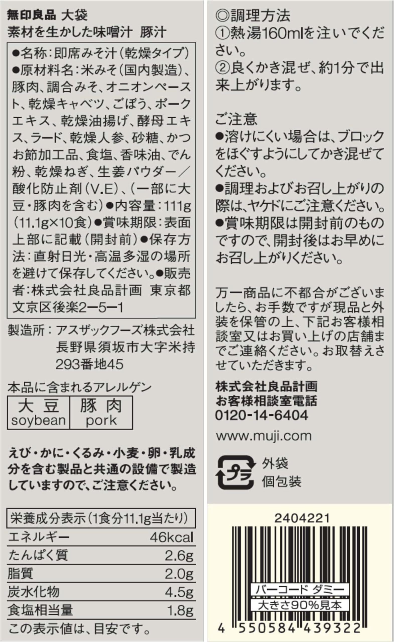 無印良品 大袋 素材を生かした味噌汁 豚汁 10食入り TDZ06A4A