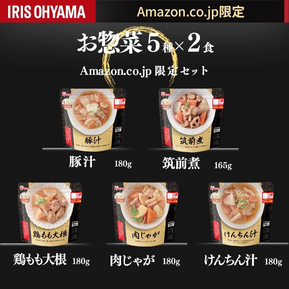 アイリスオーヤマ レトルト食品 惣菜 5種10食 詰め合わせセット 国産 常温保存 肉じゃが・筑前煮・豚汁・けんちん汁・鶏もも大根