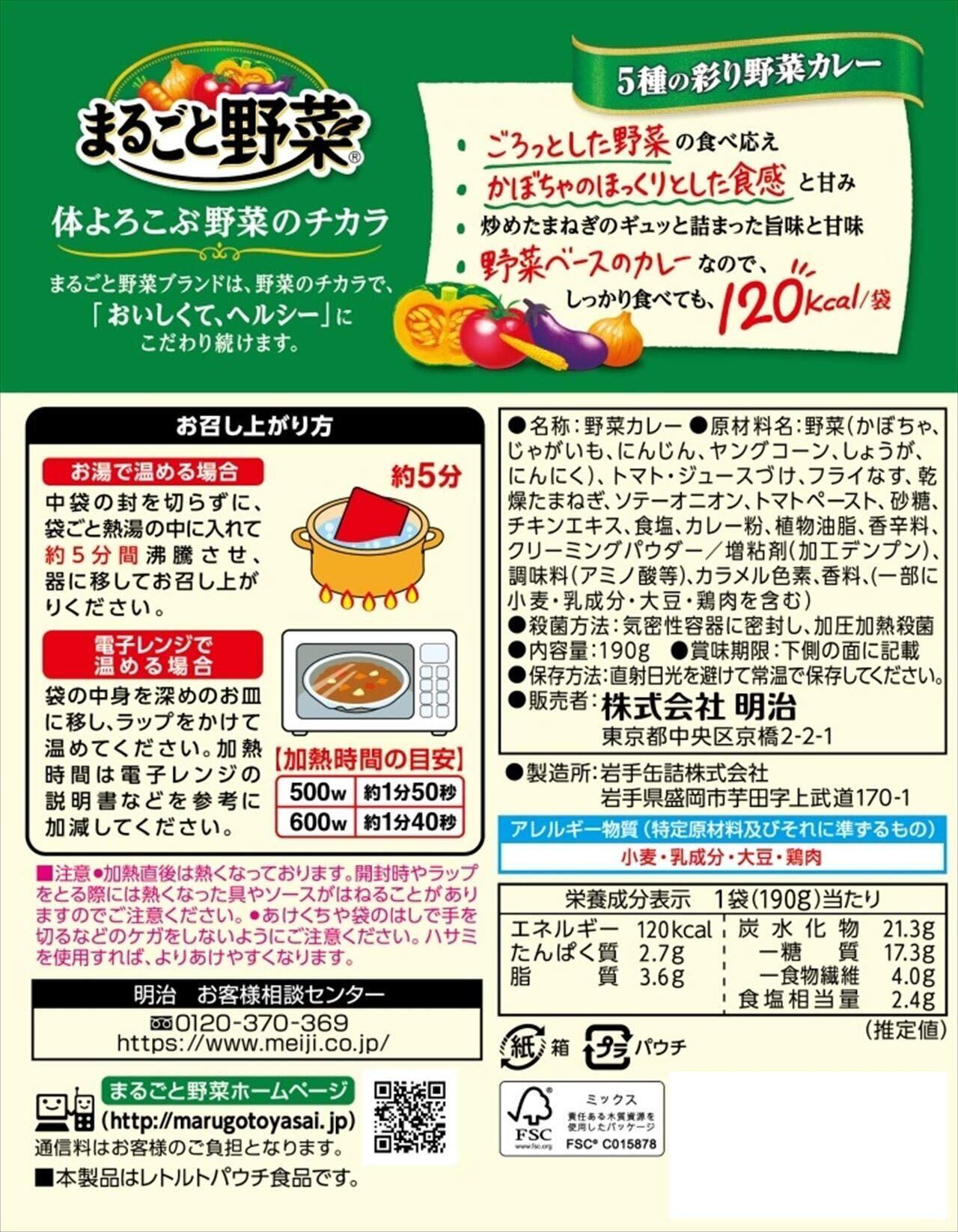 まるごと野菜 明治 5種の彩り野菜カレー 190g ×5個