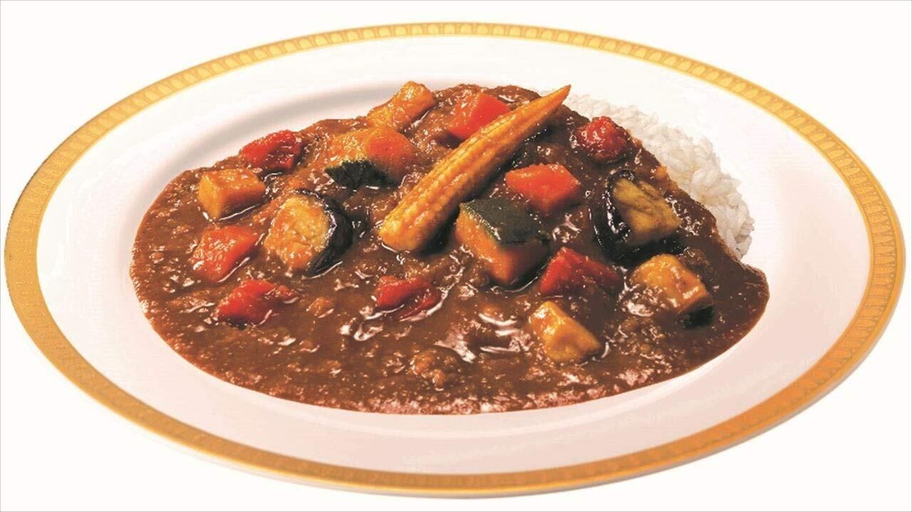 原材料:野菜(、かぼちゃ、、じゃがいも、、にんじん、、ヤングコーン、、しょうが、、にんにく)、トマト・ジュースづけ、フライなす、乾燥たまねぎ、ソテーオニオン、トマトペースト、砂糖、チキンエキス、食塩、カレー粉、植物油脂、香辛料、クリーミングパウダー/増粘剤(加工デンプン)、調味料(アミノ酸等)、カラメル色素、香料、(一部に小麦・乳成分・大豆・鶏肉を含む)