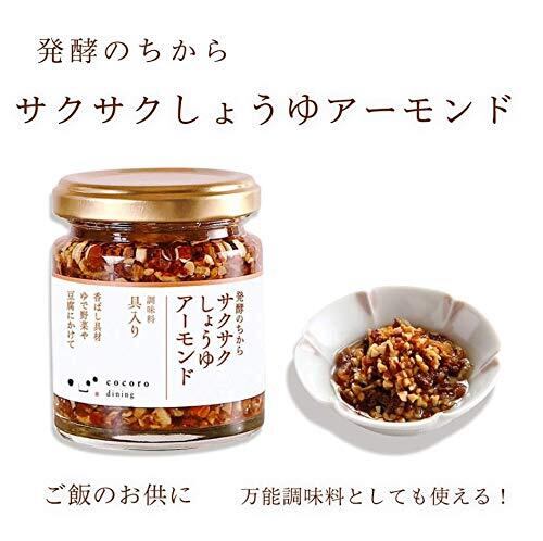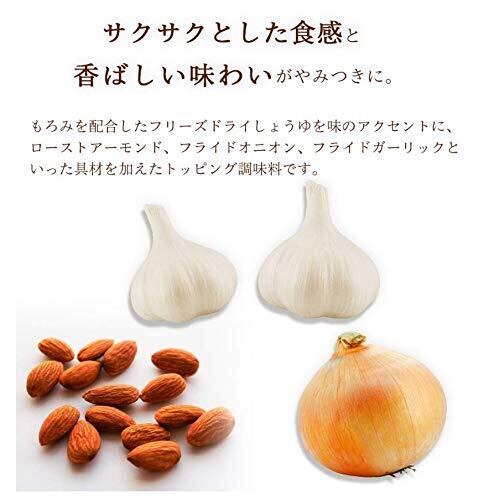 【香ばし具材】しょうゆもろみが配合されたフリーズドライしょうゆに、ローストアーモンドやフライドオニオン、フライドガーリックを入れました。ゆで野菜や豆腐にかけて、香りと食感のアクセントに。