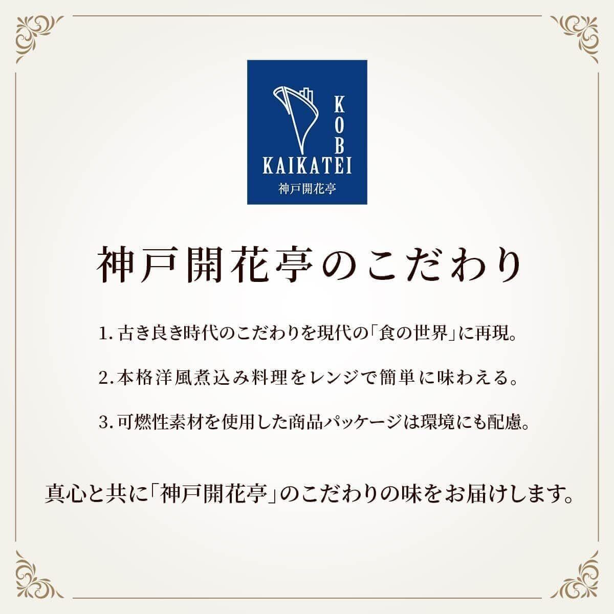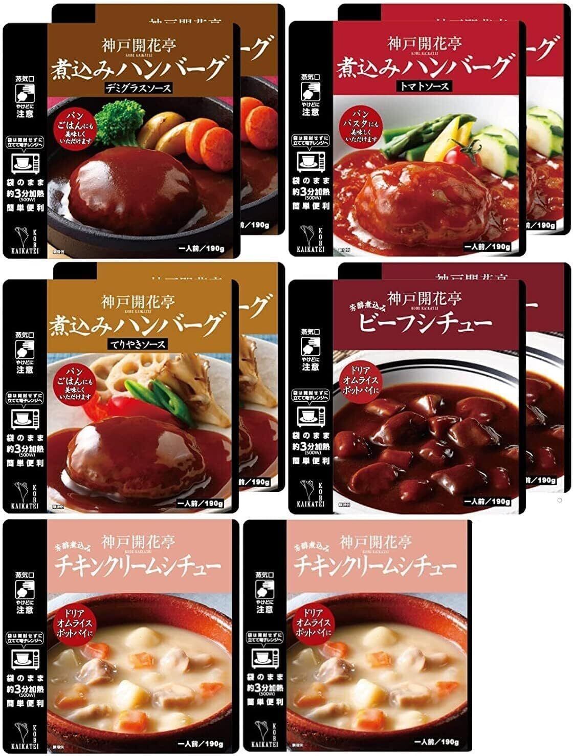神戸開花亭 こだわり ソース の 煮込みハンバーグ と シチュー の 人気 詰め合わせセット 。 ご飯 や パン 、 パスタ にもよく合う、 本格 洋食 レストラン の 味 を 自宅 で いつでも 簡単 に 楽しめます。