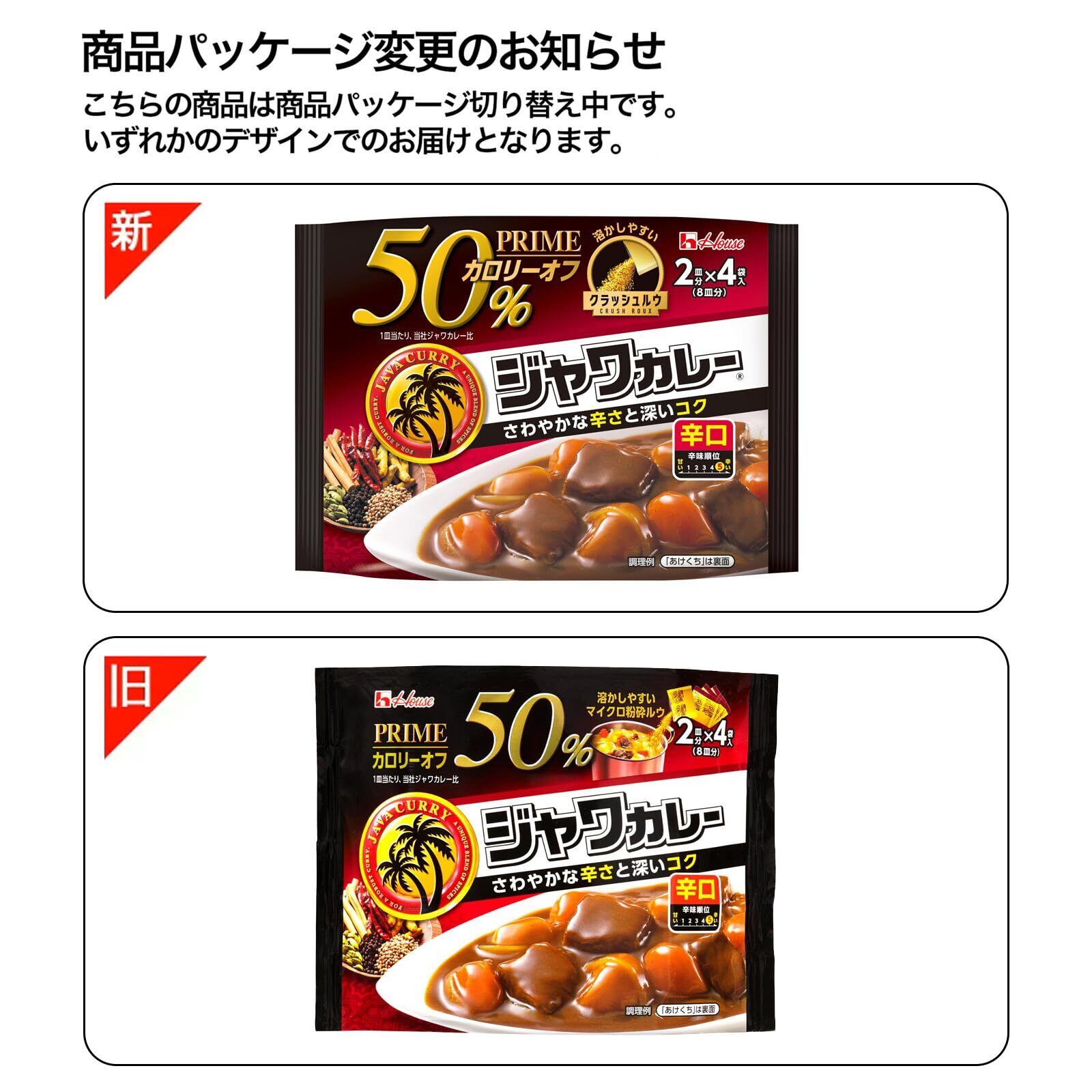 スパイシーなおいしさと、カロリー・脂質50%オフの両立しました(1皿あたり、ジャワカレーと比べて)。2皿分×4袋入(8皿分)。
