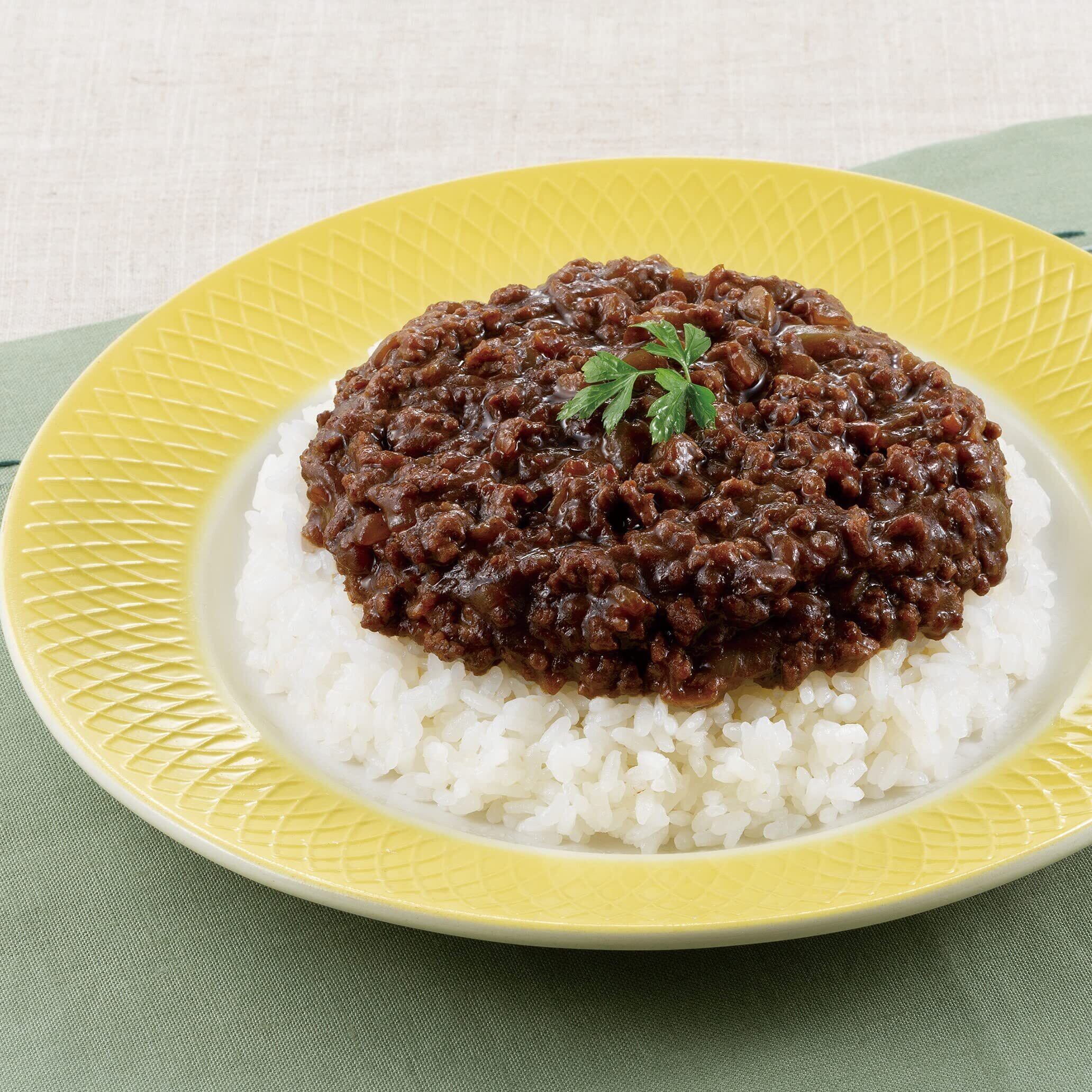 小麦粉(国内製造)、ソテー・ド・オニオン、牛肉、牛脂豚脂混合油脂、砂糖、オニオンエキス、食塩、カレー粉、ビーフエキス、トマトペースト、牛脂、ウスターソース、生クリーム、にんにく、香辛料、酵母エキスパウダー、チャツネ/カラメル色素、調味料(アミノ酸等)、増粘剤(加工デンプン)、酸味料、香料、香辛料抽出物、(一部に小麦・乳成分・牛肉・大豆・豚肉を含む)