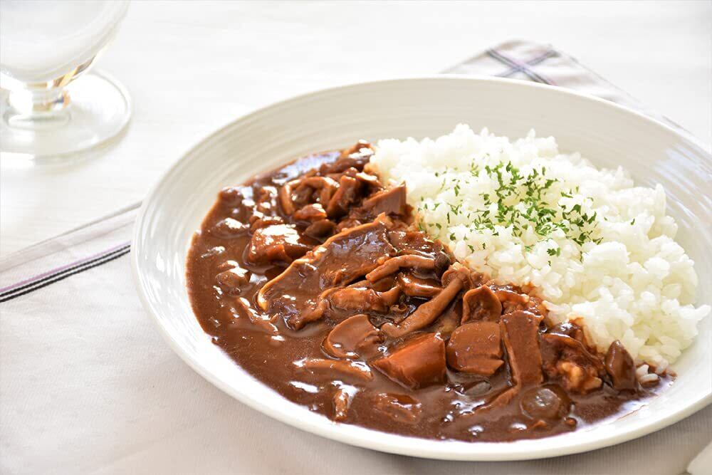 原材料:野菜(玉ねぎ(国産)、人参)、ぶなしめじ水煮、牛肉、トマトペースト、マッシュルーム水煮、小麦粉、ラード、トマトケチャップ、砂糖、デミグラスソース、食塩、ウスターソース、酵母エキス、赤ワイン、ビーフエキス、オニオンペースト、全粉乳、生姜ペースト、しょうゆ、にんにくペースト、ブイヨン、フォンドボー、バター、香辛料/カラメル色素、pH調整剤、(一部に小麦、乳成分、牛肉、大豆、鶏肉を含む)