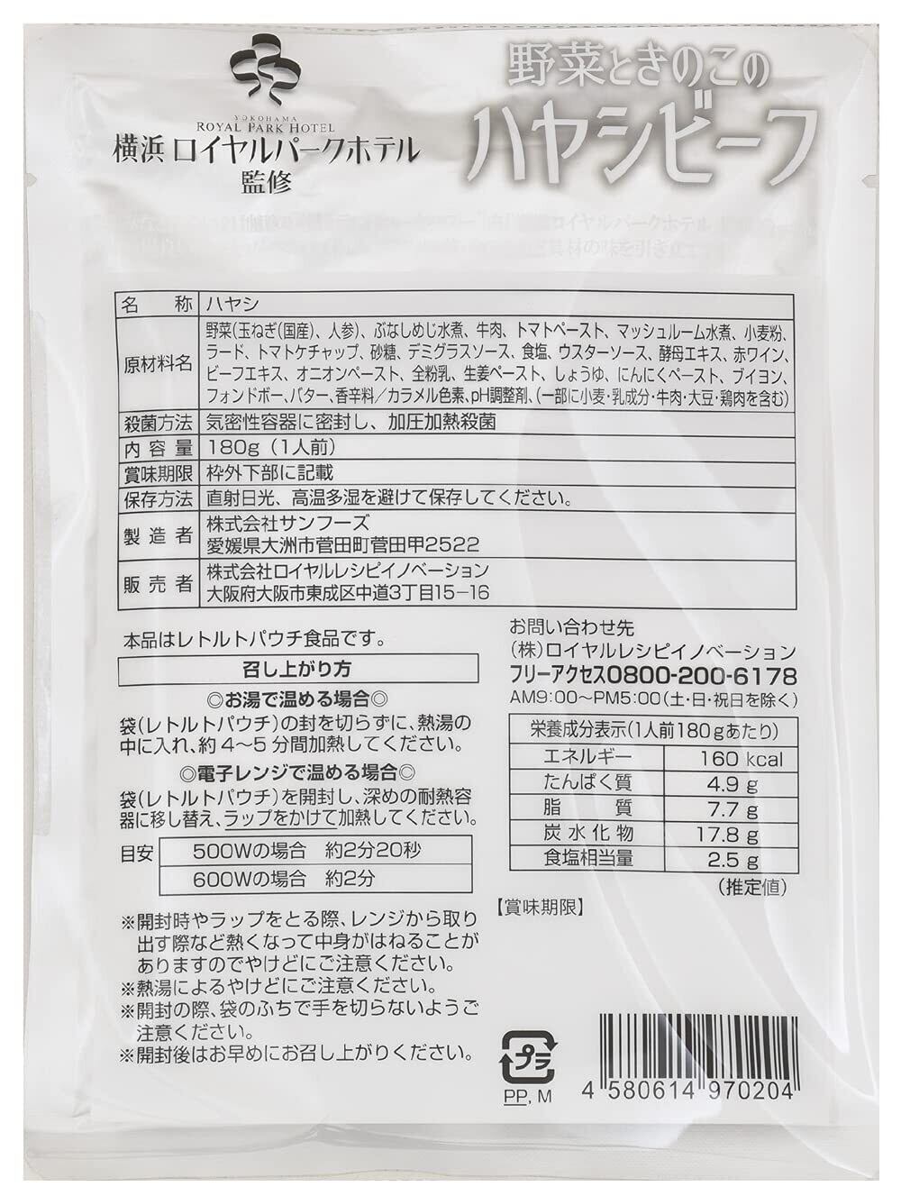 ロイヤルレシピイノベーション 横浜ロイヤルパークホテル 野菜ときのこのハヤシビーフ 180g×5個