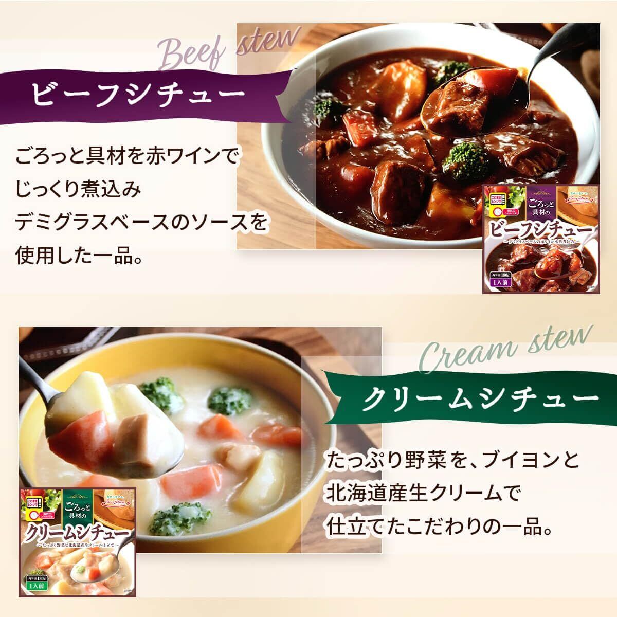具材 たっぷりの 洋食 惣菜 詰め合わせ ご飯 だけでなく パン につけても 美味しい 即席 惣菜セット 。 調理に時間や手間のかかる 料理 が レンジ で 温めるだけ でいつでも 簡単 手軽に 食べられます。