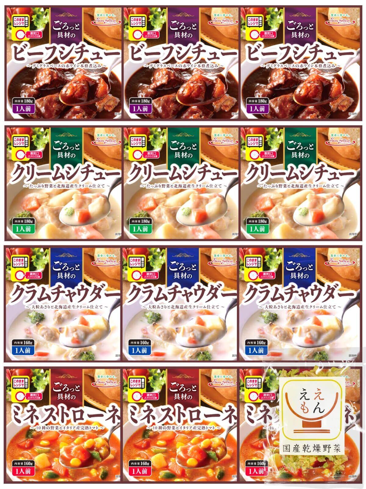 レトルト食品 詰め合わせ スープ シチュー 4種12食 セット サンフーズ レトルト レンジ対応 洋食 惣菜 常温 保存食 国産乾燥野菜