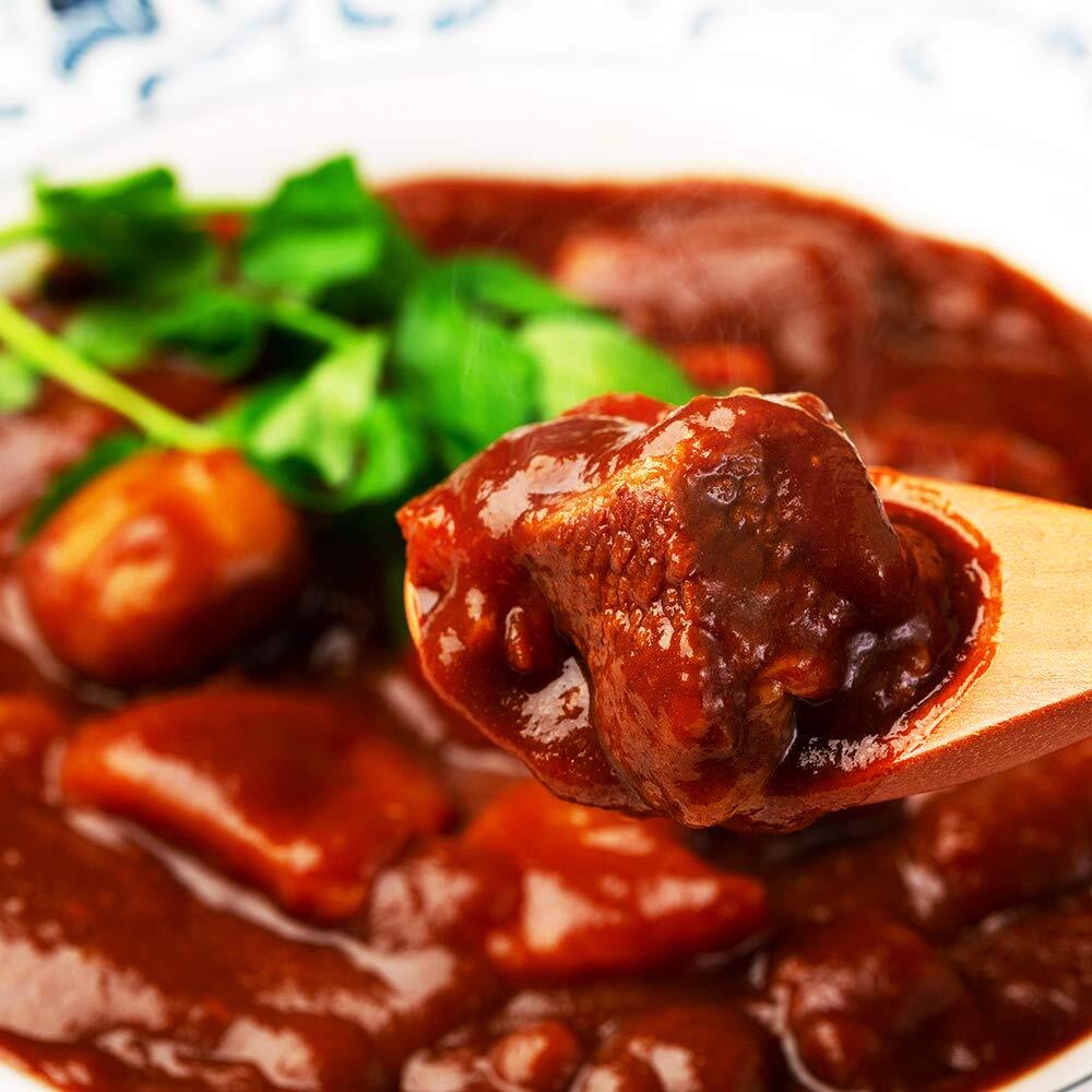 黒毛和牛と野菜の旨味が溶け込んだ贅沢なおいしさのビーフシチューです。温めるだけの簡単調理。商品内容:和牛ビーフシチュー200g。カロリー:191kcal(1人分200gあたり)。特定原材料等:牛肉、豚肉、小麦、鶏肉、乳、大豆、さば。賞味期限:製造から(常温保存)。