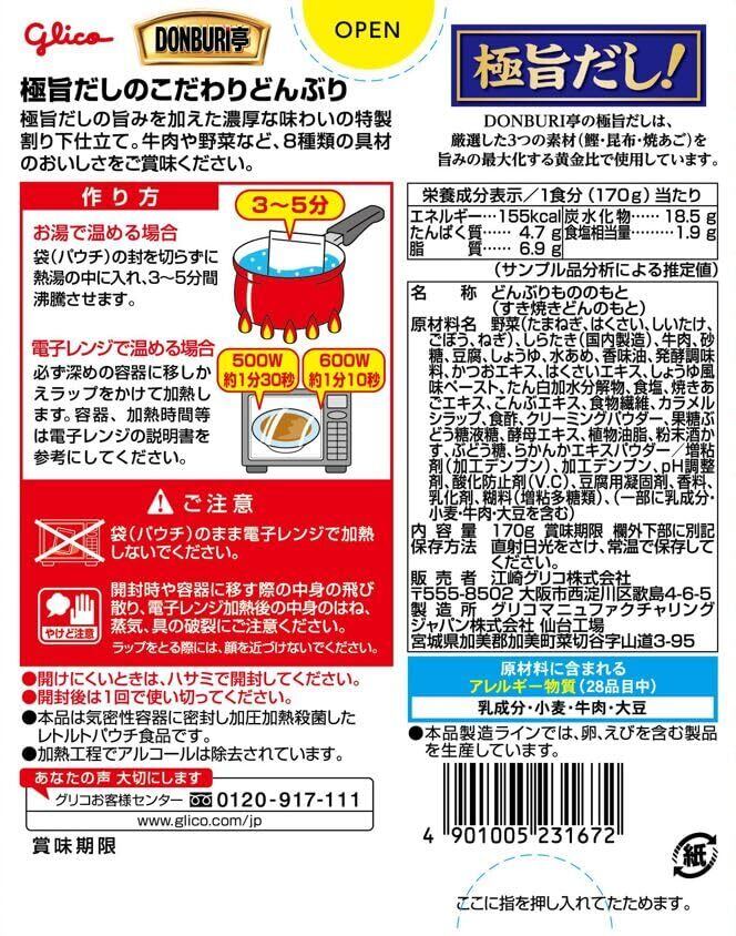 DONBURI亭 すき焼き丼 170g×10個 江崎グリコ (常温保存/非常食/備蓄/ローリングストック/どんぶりのもと/レトルト)