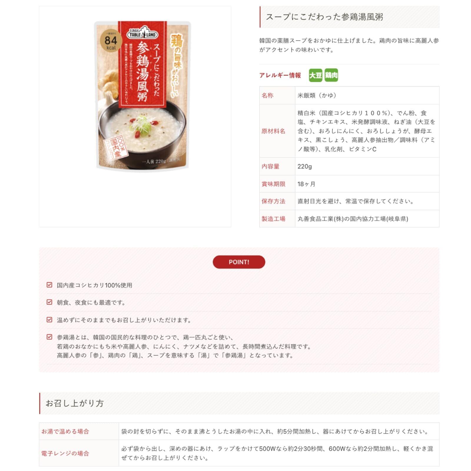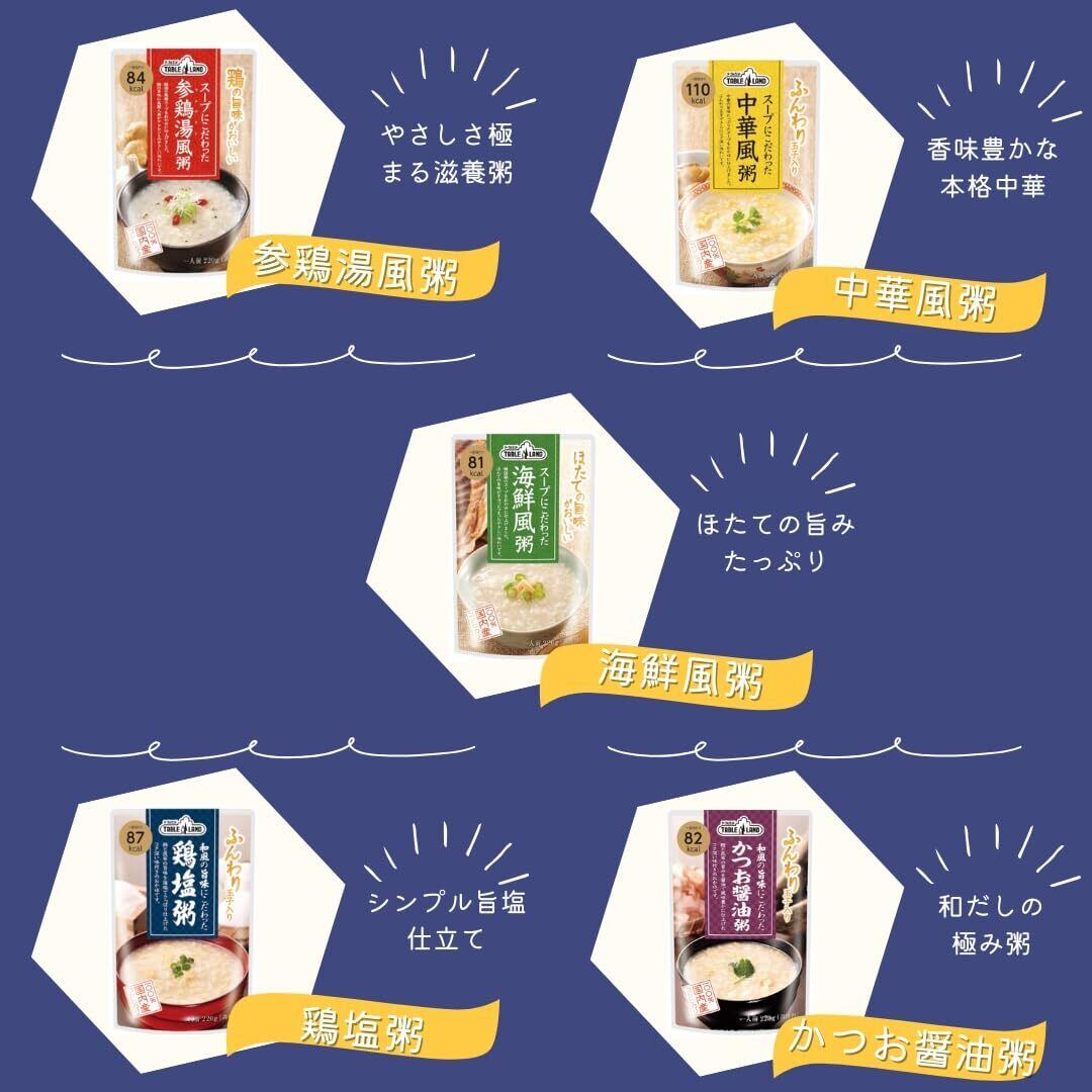 テーブルランド お粥 5種セット (参鶏湯風・中華風・海鮮風・鶏塩・かつお醤油) 国内産コシヒカリ使用 常温保存 非常食 保存食 防災 備蓄 5食分