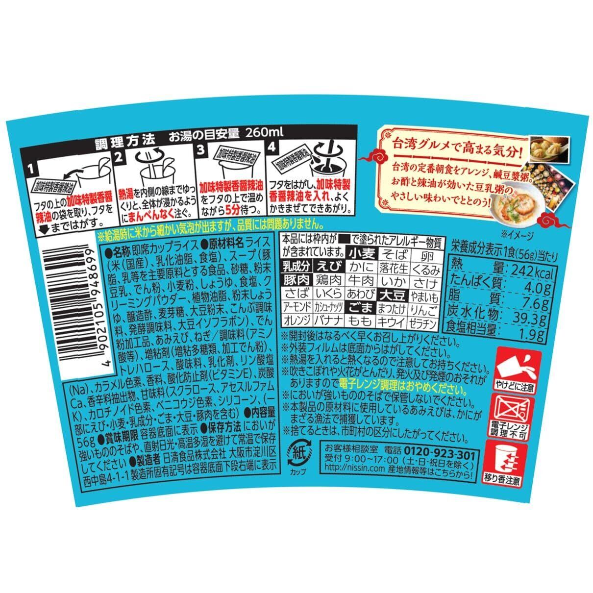 日清台湾メシ 鹹豆漿粥 [シェントウジャンガユ] 日清食品 インスタント 台湾グルメ 56g×6個
