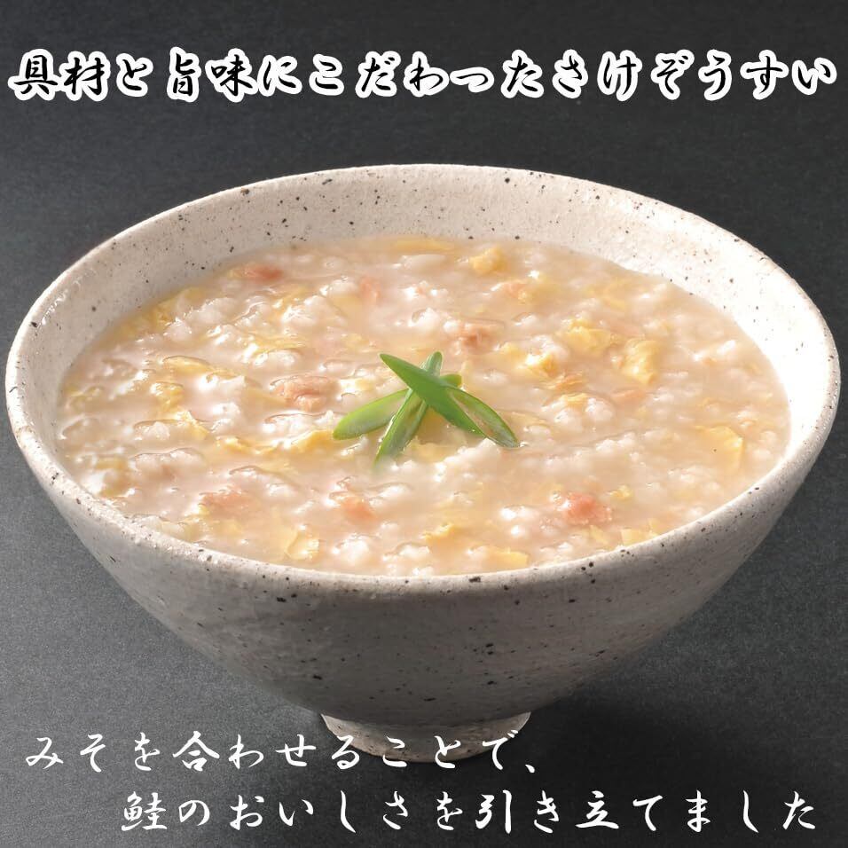 精白米(国産)、鮭、鶏卵、みそ(大豆を含む)、白菜エキス、鮭エキス、砂糖、しょうゆ(小麦・大豆を含む)、酵母エキス、食塩、昆布エキス/増粘剤(加工でん粉)、調味料(アミノ酸等)、乳化剤、酸味料