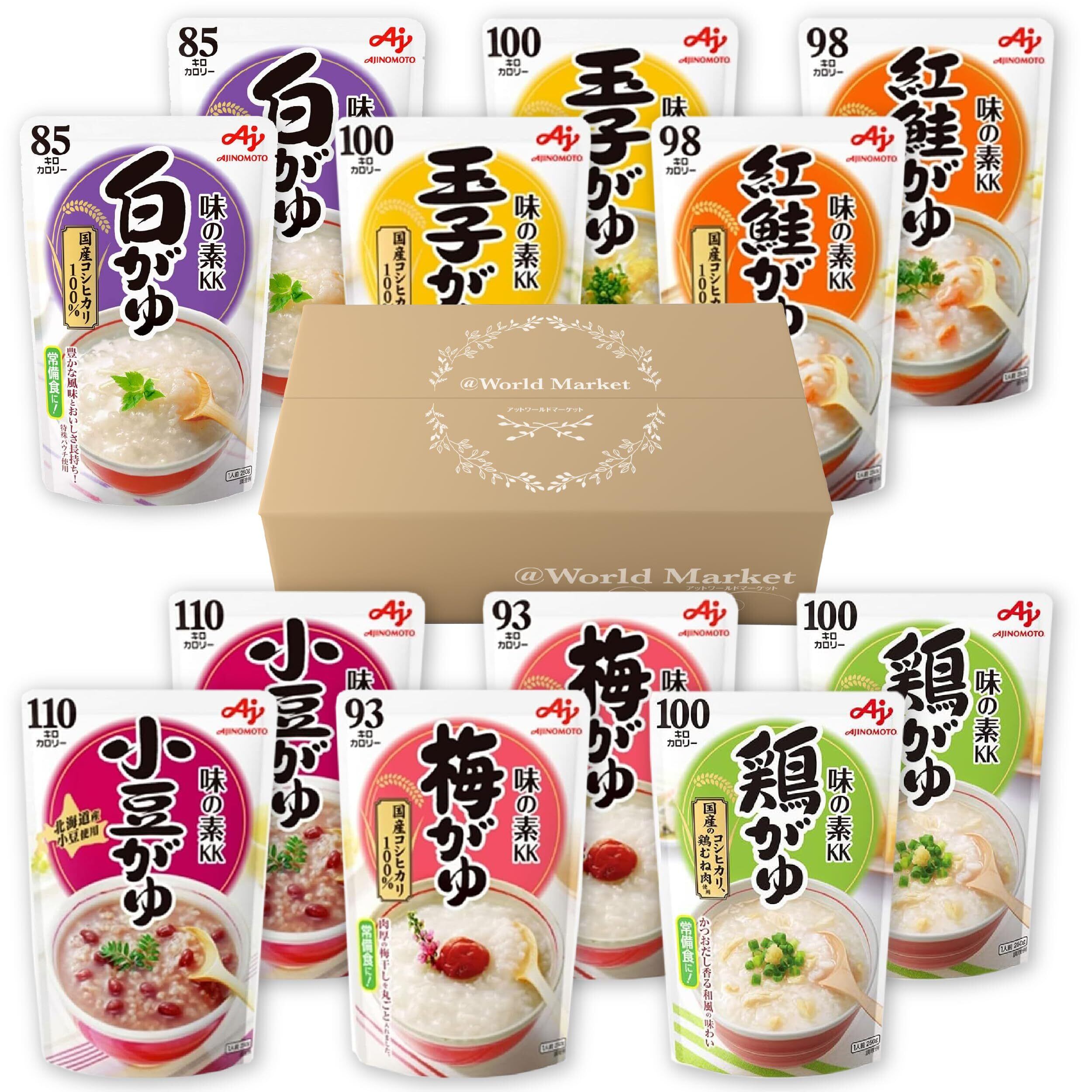 味の素 レトルト 食品 おかゆ お粥 詰め合わせ セット 6種 × 各種2個 12食 雑炊 惣菜 ご飯 白がゆ 梅がゆ 玉子がゆ 紅鮭がゆ 鶏がゆ 小豆がゆ 常温保存 @World Market オリジナルBOX付き プレゼント 美味しい お中元