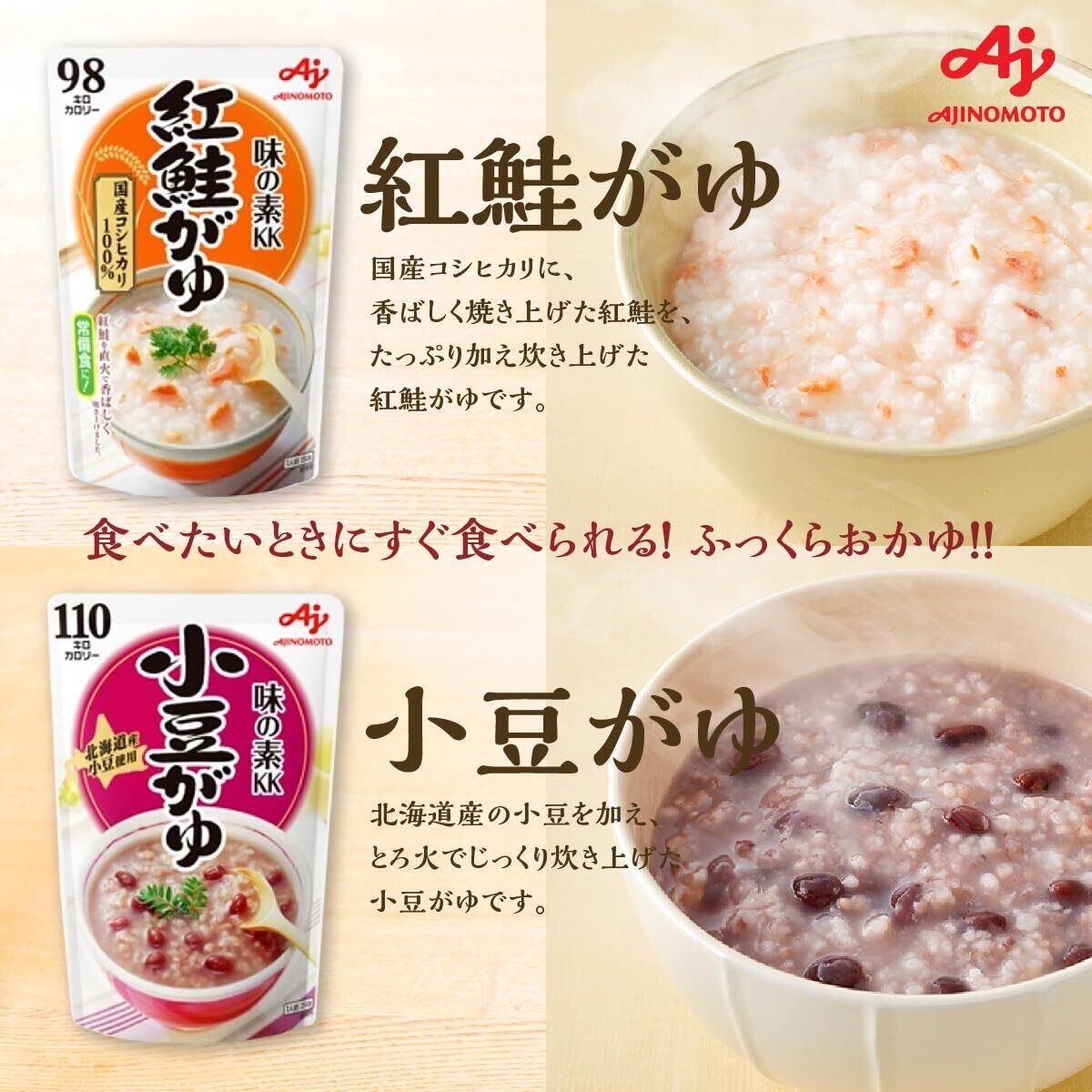 「味の素KKおかゆ」シリーズは、持ち運びに便利なレトルトパウチ。温めずにそのままでもお召し上がりいただけますので、場所や状況を問わずにお召し上がりいただくことができます。 白がゆ:国産コシヒカリと南アルプスを源とする清水を使用し、土鍋炊きに学んだ製法でふっくらと炊き上げた白がゆです。 梅がゆ:国産コシヒカリに、肉厚の梅干を丸ごと入れて炊き上げた風味豊かな梅がゆです。 玉子がゆ:国産コシヒカリに、こだわりのふんわり玉子をたっぷり加え、和風だしで炊き上げた玉子がゆです。