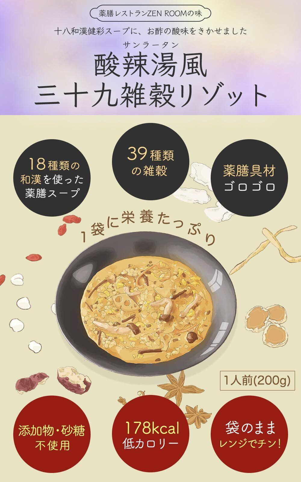 ZEN ROOM リゾット 薬膳スープ 【十八和漢健彩スープでつくった酸辣湯風三十九雑穀リゾット】 200g(1人前)×4袋 無添加スープ ヘルシー ゼンルーム