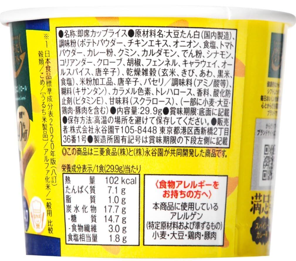 スパイシーな刺激がクセになる、「米、玄米、黒米、きび、あわ、大豆たんぱく」を使用した、雑穀入りのヘルシーなカップライスです。