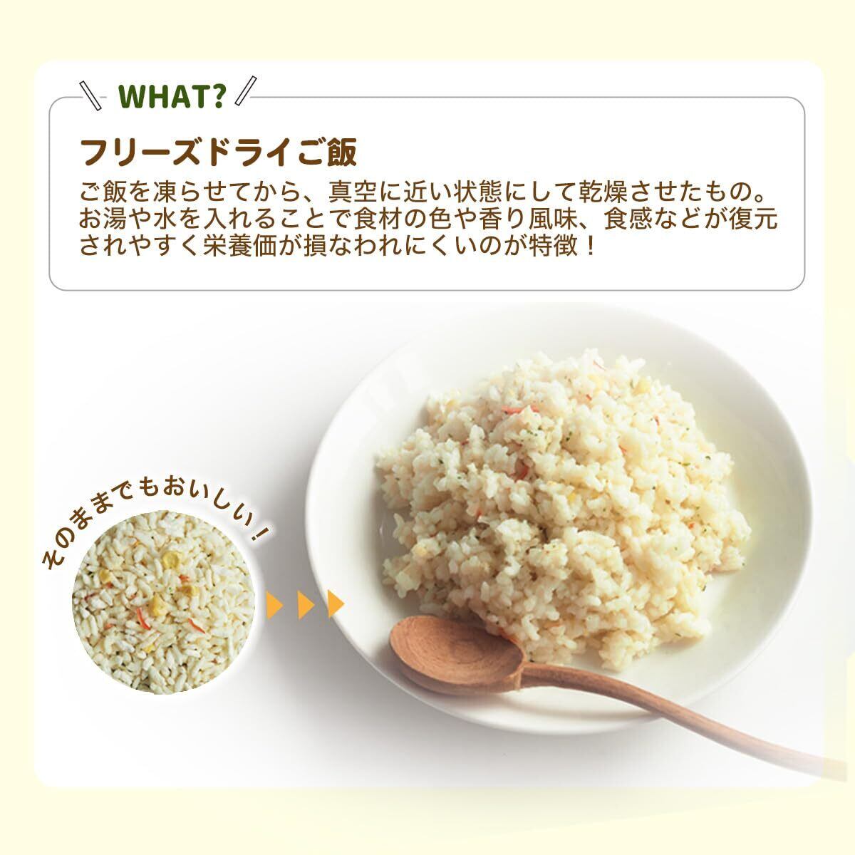 【フリーズドライご飯】水不要でスナック菓子のようにそのままでも食べられる7年保存の非常食です。長期保存ができるので、防災の備蓄やアウトドアの携帯食にも!お湯を注いで3分待つとご飯になります。
