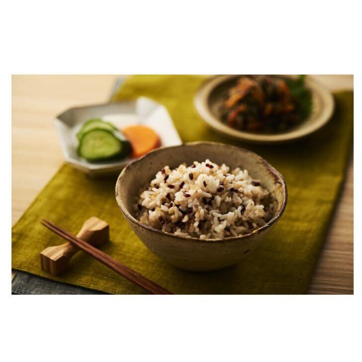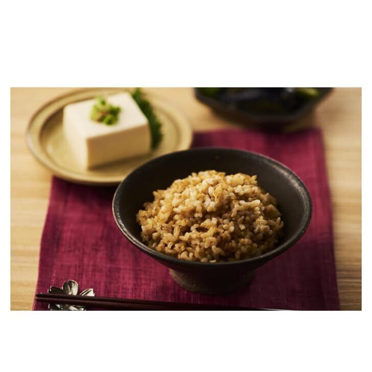 発芽玄米ごはん:うるち玄米、もち玄米に加え、栄養価の高い発芽古代米をブレンドしました。もち性の品種を配合することでもっちり食感に仕上げました。