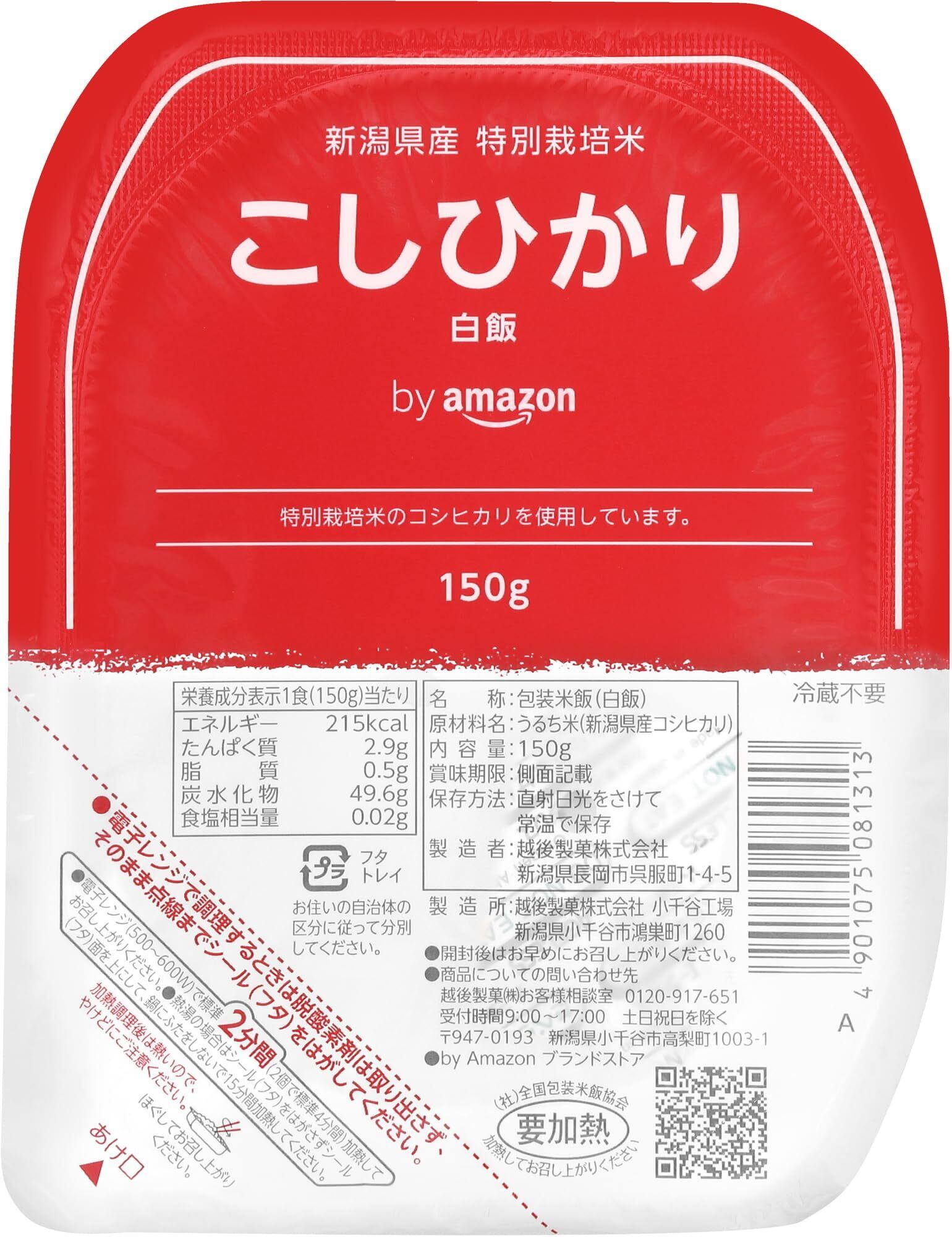 新潟県産の特別栽培米コシヒカリを使用し、ふっくら炊きあげたパックごはんです。