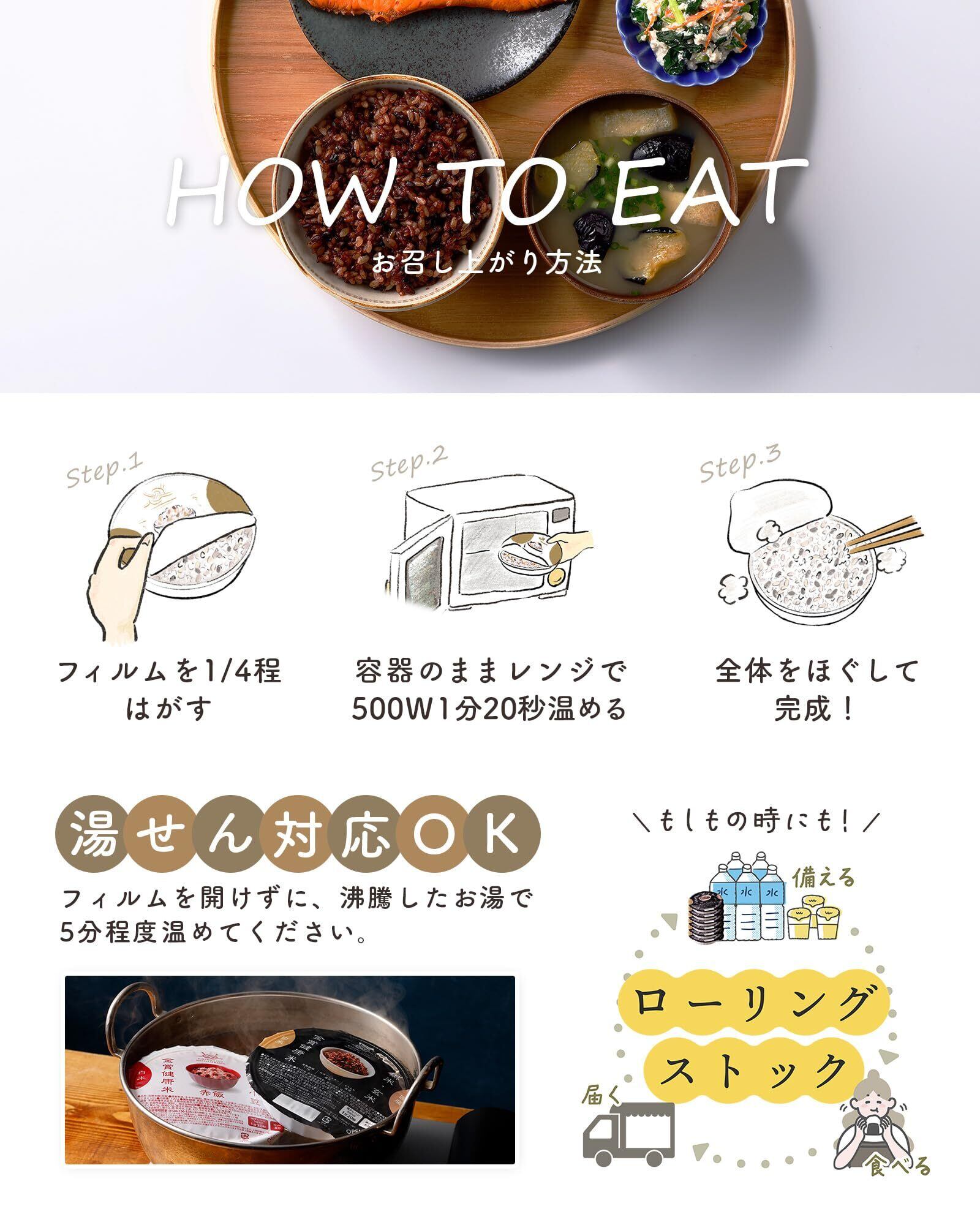 【独自製法×大学共同開発】近畿大学農学部と共同開発した独自の「ヘルスキープ製法」により、通常の白米に比べてビタミンEやビタミンB1の残存率が高いのが特徴。創業50年の米飯製造技術と徹底した品質管理で、ふっくら食感と香ばしい風味を実現しました。