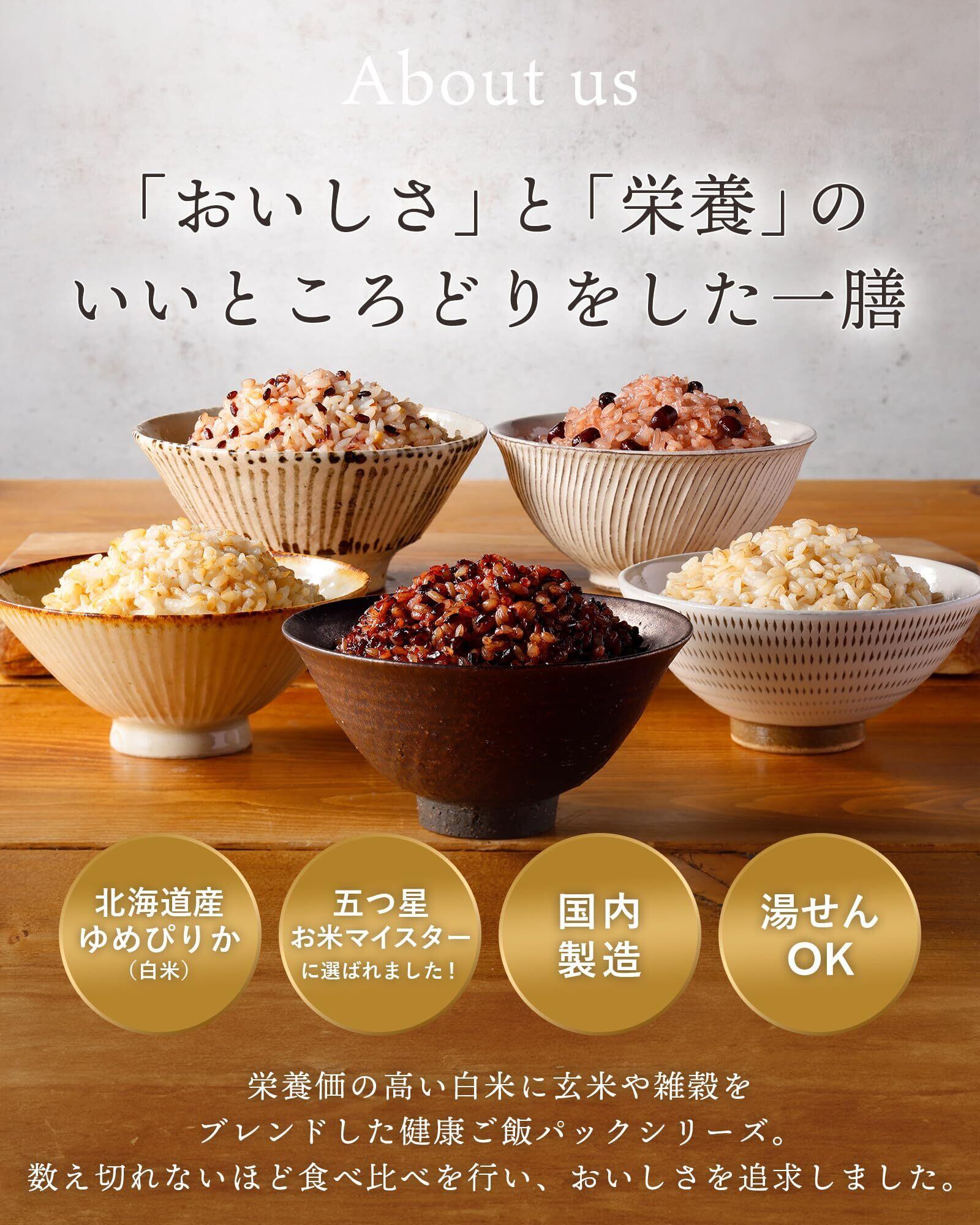 【金賞受賞の「金賞健康米」使用】北海道産ゆめぴりかを独自製法で仕上げた「金賞健康米」は、日本米飯管理士協会から金賞を受賞。五つ星お米マイスターが厳選した素材を使った、信頼と実績のレトルトご飯です。