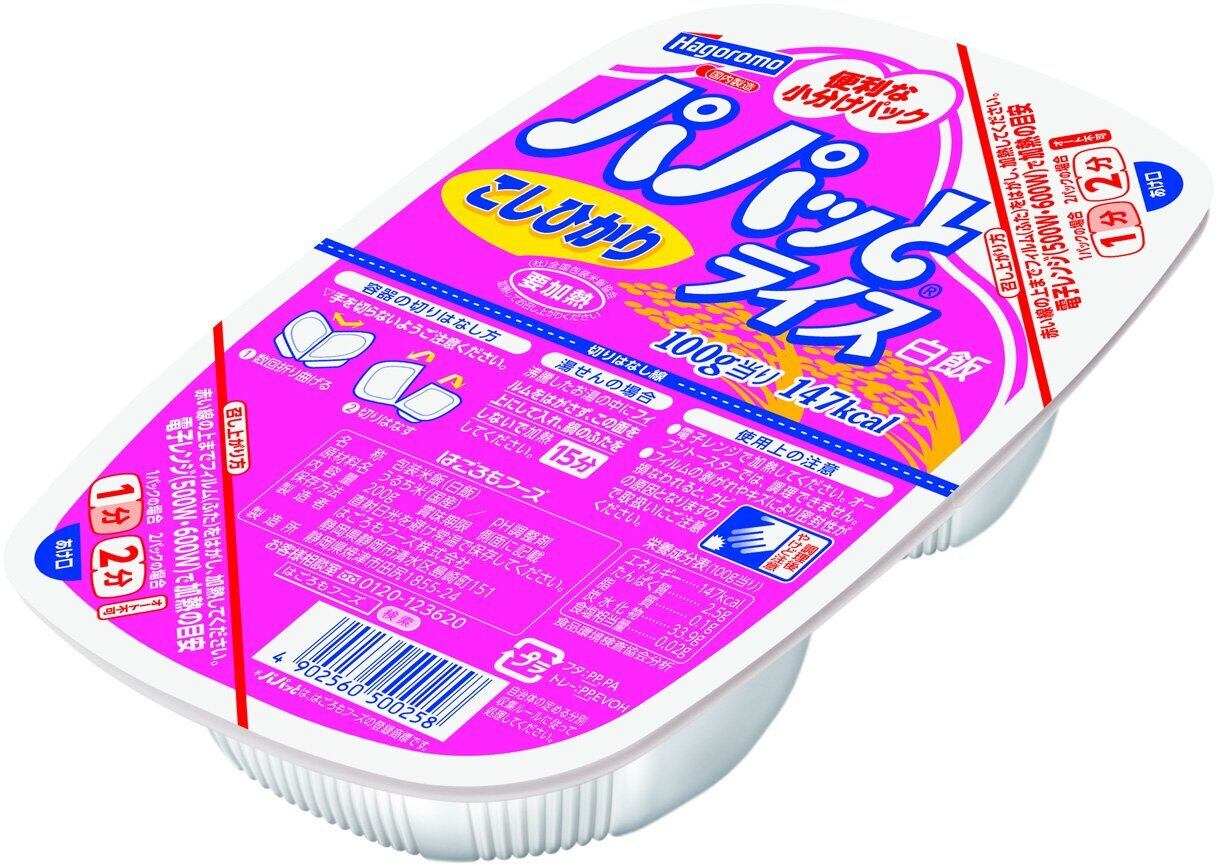 国産こしひかりを使用し、小分けにしました。「かるーく食べたい」から「たっぷり食べたい」まで食べたい分だけ、いつでも手軽に炊きたてのこしひかりが味わえます。常温保存ができ、食べたい分を電子レンジで温めるだけで手間ひまいらずに、食べられます。もちろん湯煎でもご利用いただけます。