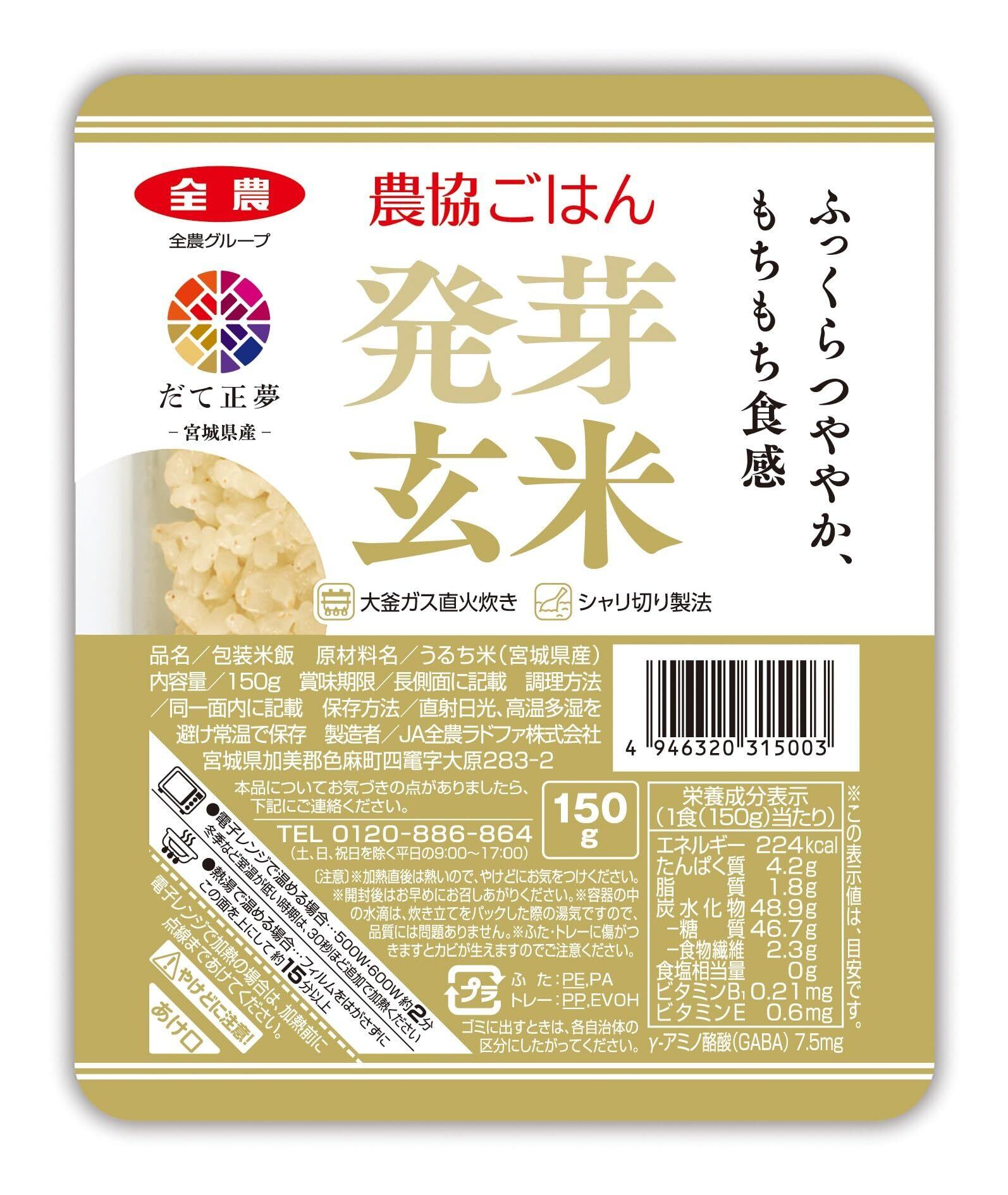 パールライス ラドファ 農協ごはん 発芽玄米ごはん(宮城県産だて正夢) 150g×12入り