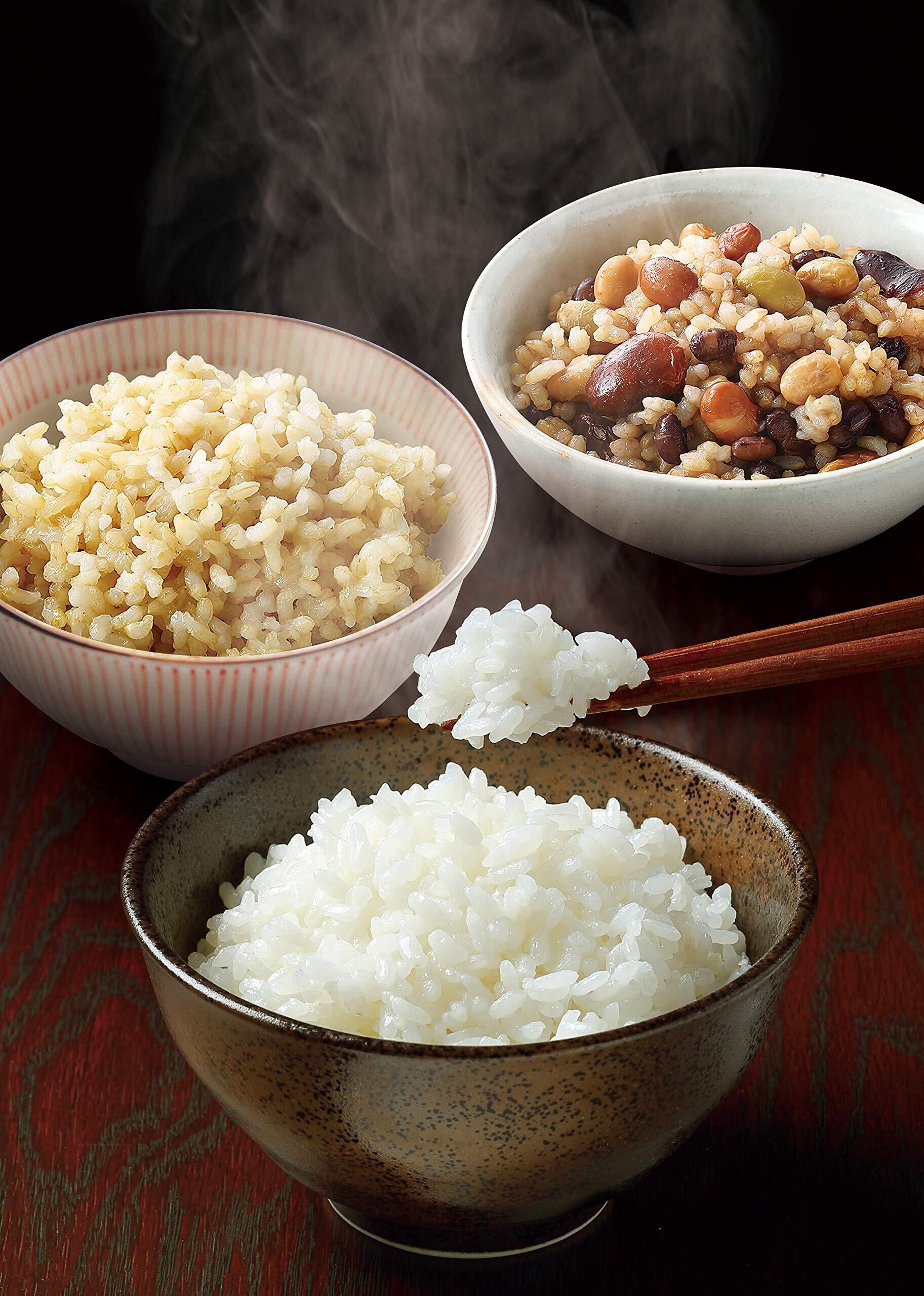 玄米は新潟県産コシヒカリを100%使用しています。超高圧処理により、もちもちやわらかな食感に仕上げました。白米に比べ、食物繊維・カルシウム・ギャバを豊富に含み、栄養価が高く、レンジでチン! するだけで手軽に摂取でき便利です。