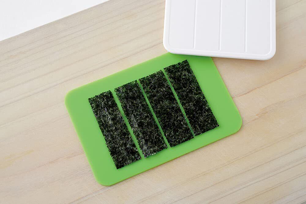 ●専用海苔カッターでおにぎりにぴったりサイズの海苔を4枚同時に抜く事ができる