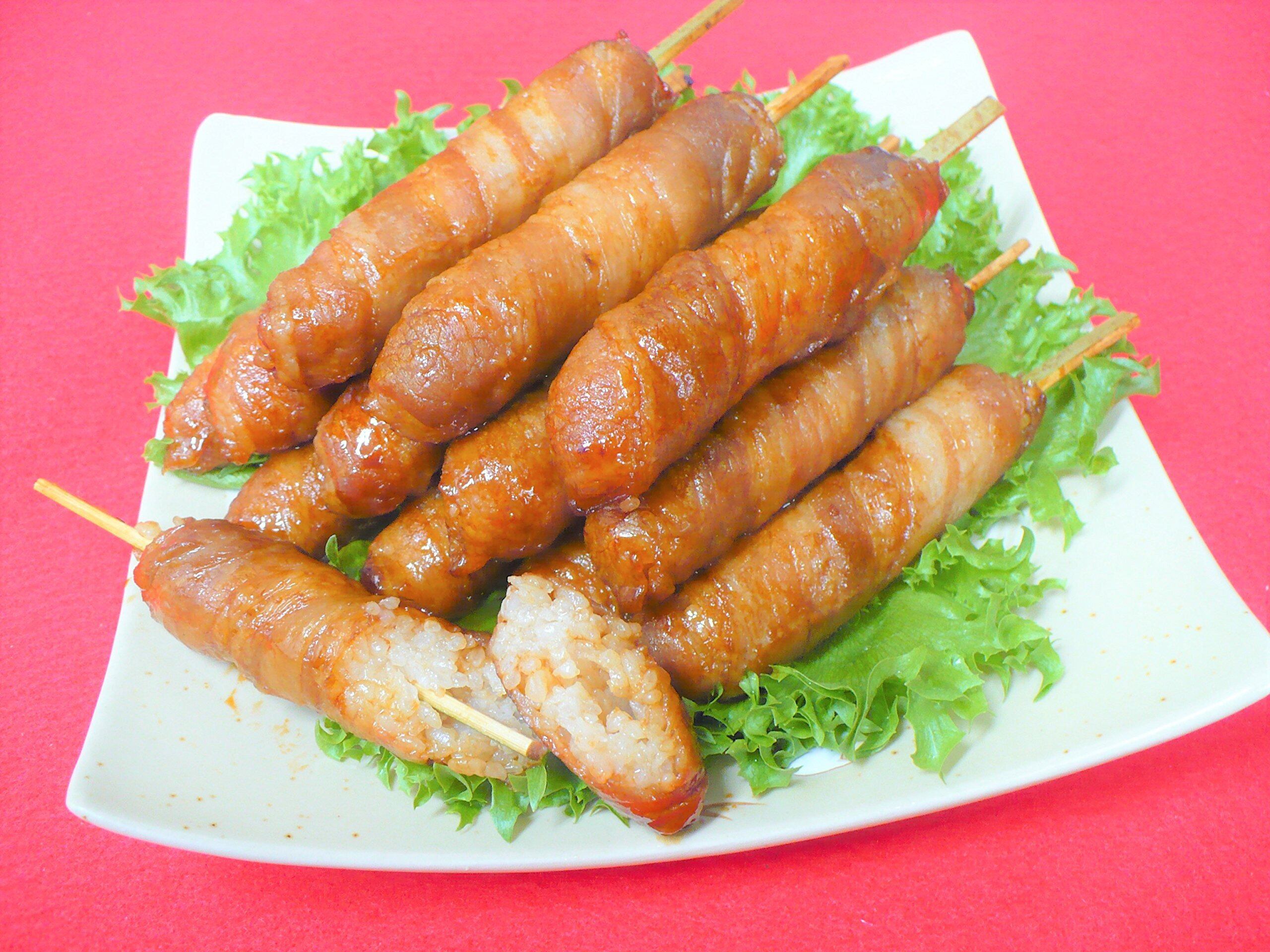宮崎発祥のB級グルメ!宮崎名物の肉巻きおにぎりを食べやすい大きさのスティック状にして焼き上げました。