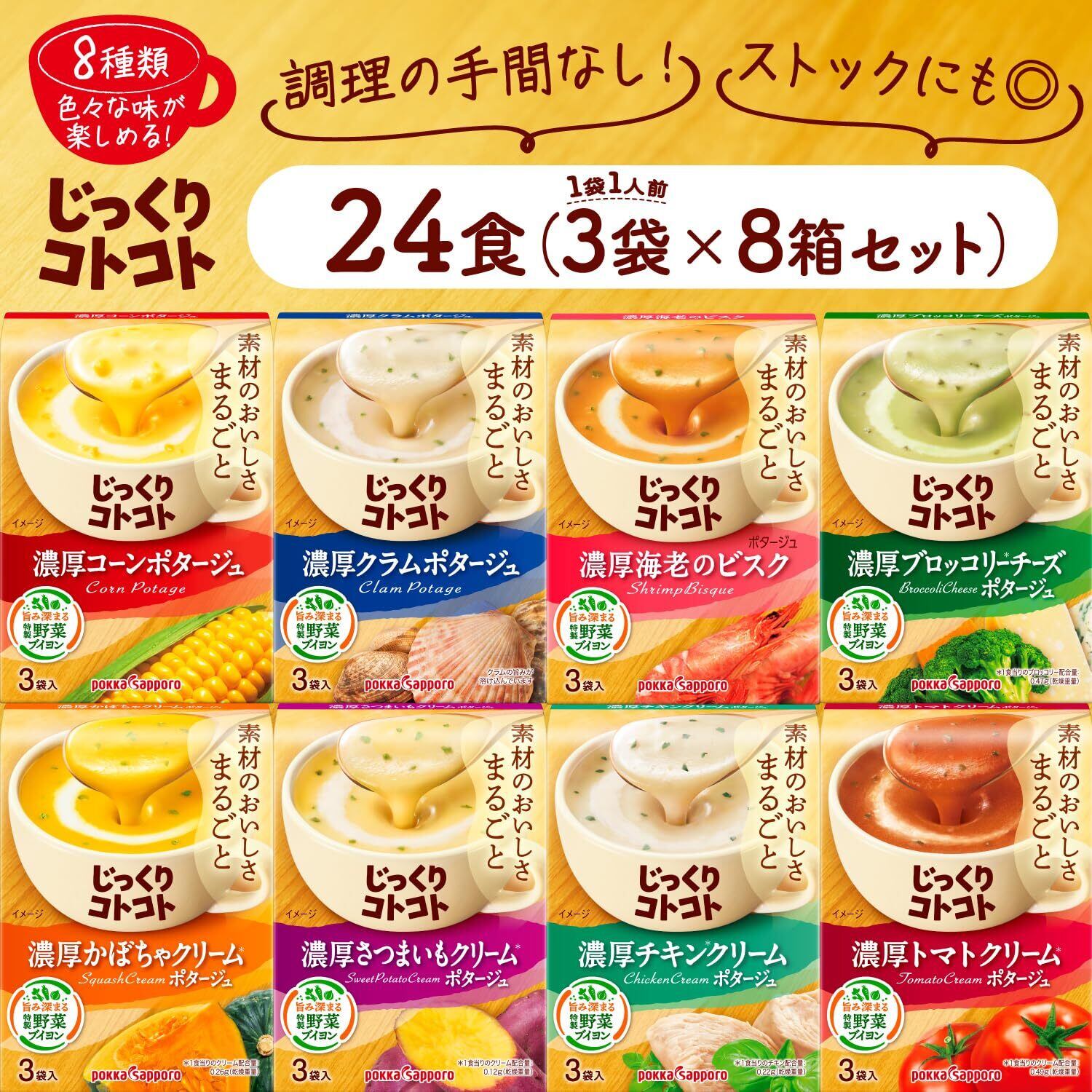 じっくりコトコト濃厚スープ 8種詰め合わせ 24食アソートセット(3食×8種)ポッカサッポロ インスタント 簡単 便利 ポタージュ 野菜 非常食 保存食 備蓄 ローリングストック