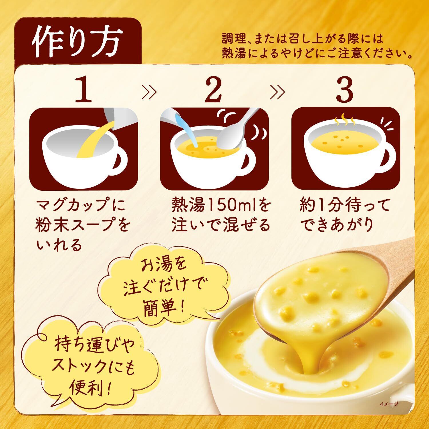 〇コーン:コーンがたっぷりとけこんだ、濃厚クリーミーなコーンポタージュ。上品な甘みとなめらかなくちあたりで、素材のおいしさをまるごと味わえます。〇クラムポタージュ:3種の貝の旨みがたっぷりとけこんだ、濃厚クリーミーなクラムポタージュ。贅沢な旨みととろけるくちあたりで、素材のおいしさをまるごと味わえます。〇ビスク:海老のおいしさがとけこんだ、濃厚クリーミーな海老のビスクです。海老の深みのある贅沢な旨みとなめらかなくちあたりで、素材のおいしさをまるごと味わえます。たまねぎやキャベツの芯も活用した特製野菜ブイヨンも濃厚さのヒミツ。〇かぼちゃ:かぼちゃがたっぷりとけこんだ、濃厚クリーミーなかぼちゃクリームポタージュ。ほっこりした甘みとほくほくしたくちあたりで、素材のおいしさをまるごと味わえます。*1食当りの配合量:クリーム0.26g〇チキンクリーム:チキンと7種のハーブがとけこんだ、濃厚クリーミーなチキンクリームポタージュ。コクのある旨みととろけるくちあたりで、素材のおいしさをまるごと味わえます。*1食当りの配合量:チキン0.22g〇ブロッコリーチーズ:ブロッコリーと3種のチーズがとけこんだ、濃厚クリーミーなブロッコリーチーズポタージュ。コクのある旨みととろけるくちあたりで素材のおいしさをまるごと味わえます。*1食当りの配合量:ブロッコリー0.47g〇トマトクリーム:完熟トマトがたっぷりとけこんだ、濃厚クリーミーなトマトクリームポタージュ。甘旨さととろとろなくちあたりで、素材のおいしさをまるごと味わえます。*1食当りの配合量:クリーム0.49g〇さつまいも:さつまいもがたっぷりとけこんだ、濃厚クリーミーなさつまいもクリームポタージュ。コクのある甘みとほくほくしたくちあたりで、素材のおいしさをまるごと味わえます。*1食当りの配合量:クリーム0.12g