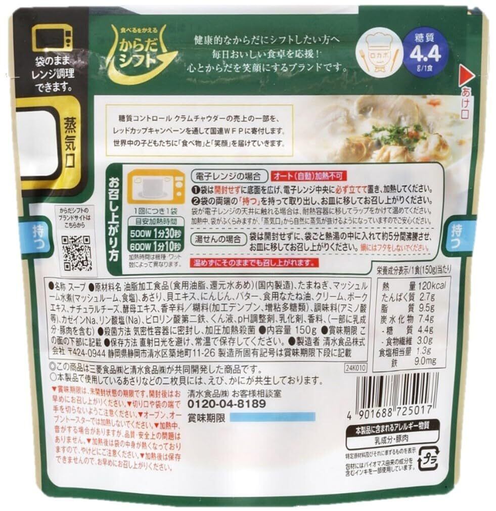 からだシフト 糖質コントロール クラムチャウダー (150g × 5個) 糖質35%オフ (電子レンジ対応パウチ/時短調理) 一人暮らしの方にも (簡単調理) レトルト 糖質カット | FJ即配ストア