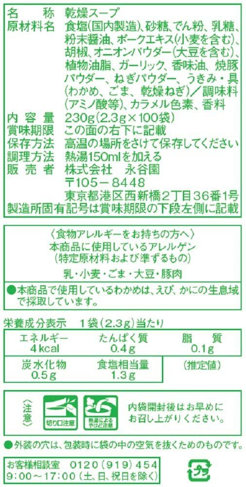 永谷園 業務用わかめスープ 2.3g×100袋入