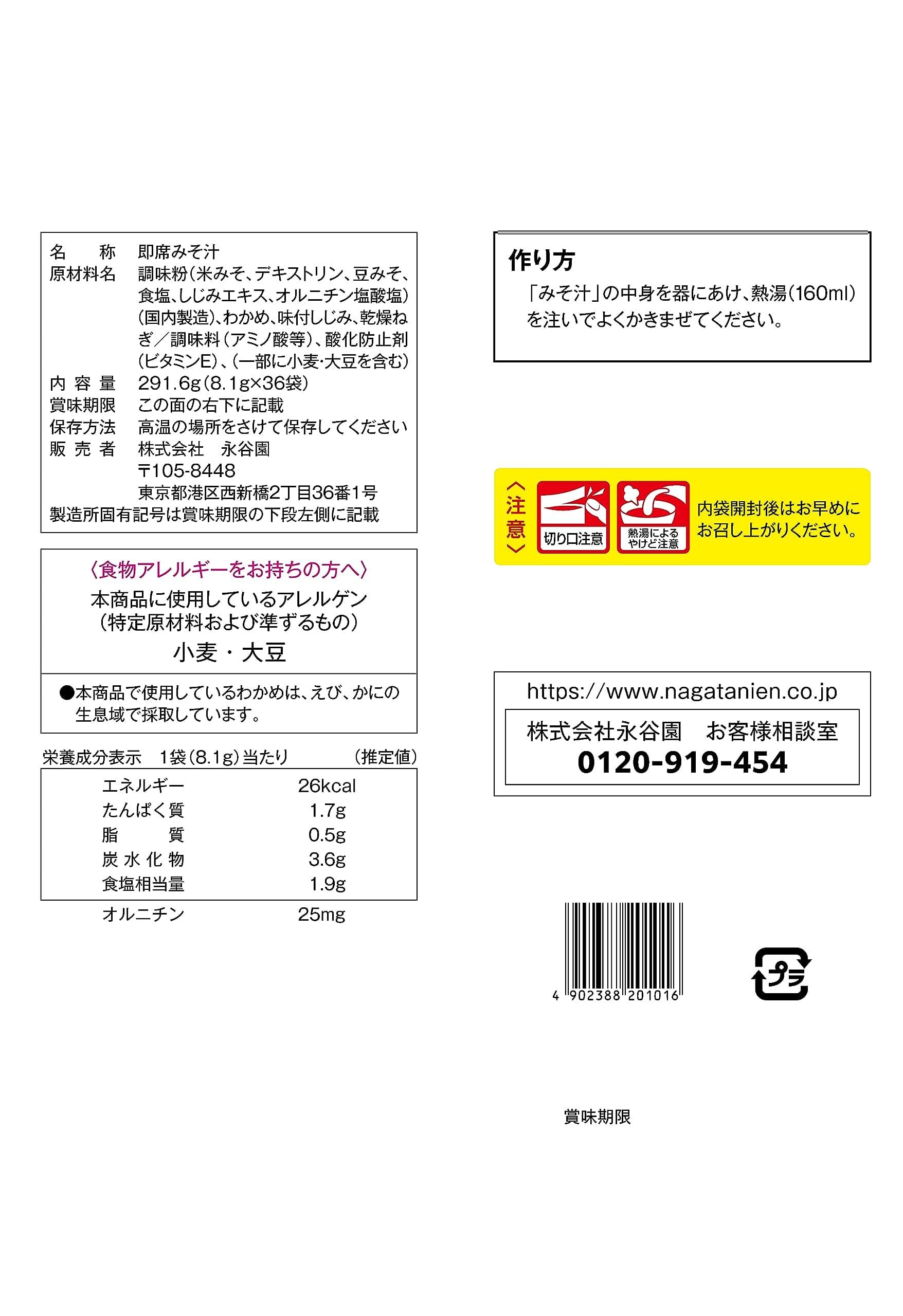 Nagatanien 永谷園 1杯でしじみ70個分のちから みそ汁 粉末タイプ 291.6g (36食入)